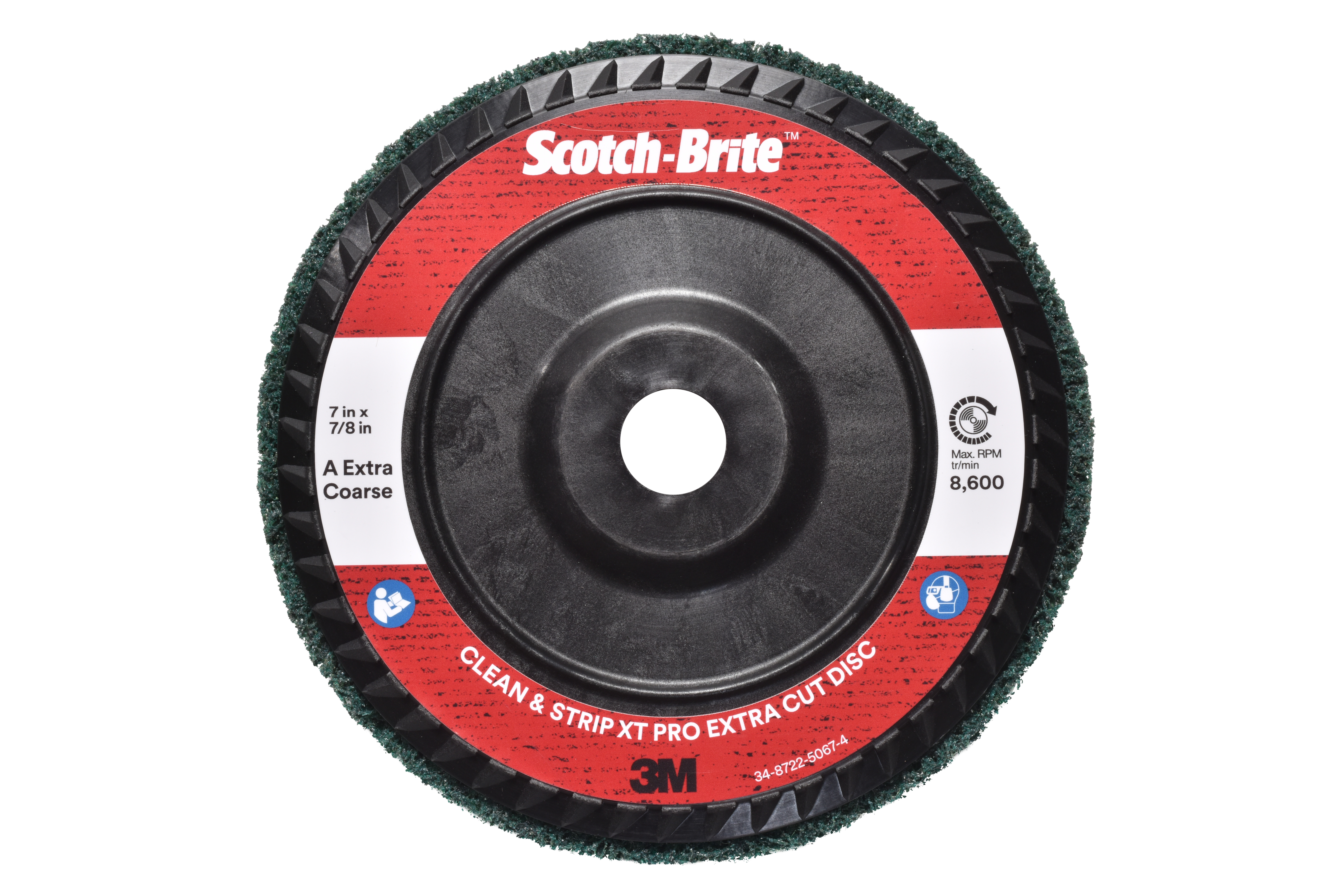 Scotch-Brite™ Clean and Strip XT Pro Extra Cut Disc, XC-DC, A/O Extra Coarse, Green, 7 in x 7/8 in, Type 27, 5 ea/Case