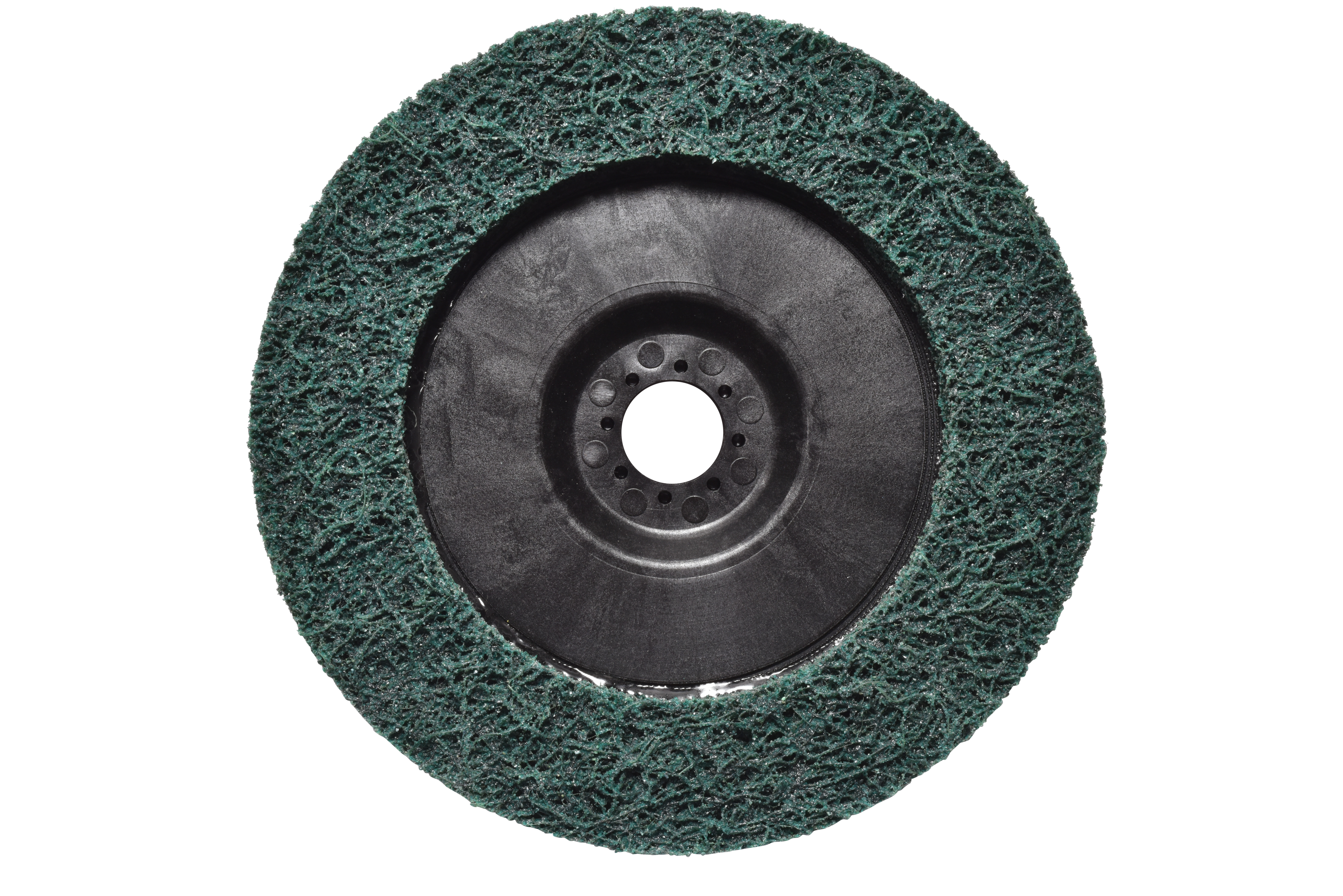 To engineer the Scotch-Brite™ Clean and Strip XT Pro Extra Cut Disc, aluminum oxide mineral is combined with non-woven nylon fibers using resin. Aluminum oxide is a very hard mineral that delivers a high cut rate, commonly used in high-pressure applications like cutting and weld removal. The resin bond strengthens the fiber web and allows it to gradually break down to reveal new fibers and sharp mineral – delivering a consistent cut over the life of the abrasive. The combination of fiber strands, resin and abrasive mineral forms a thick, open web. Gaps in the web allow swarf to escape, minimizing loading of the abrasive.