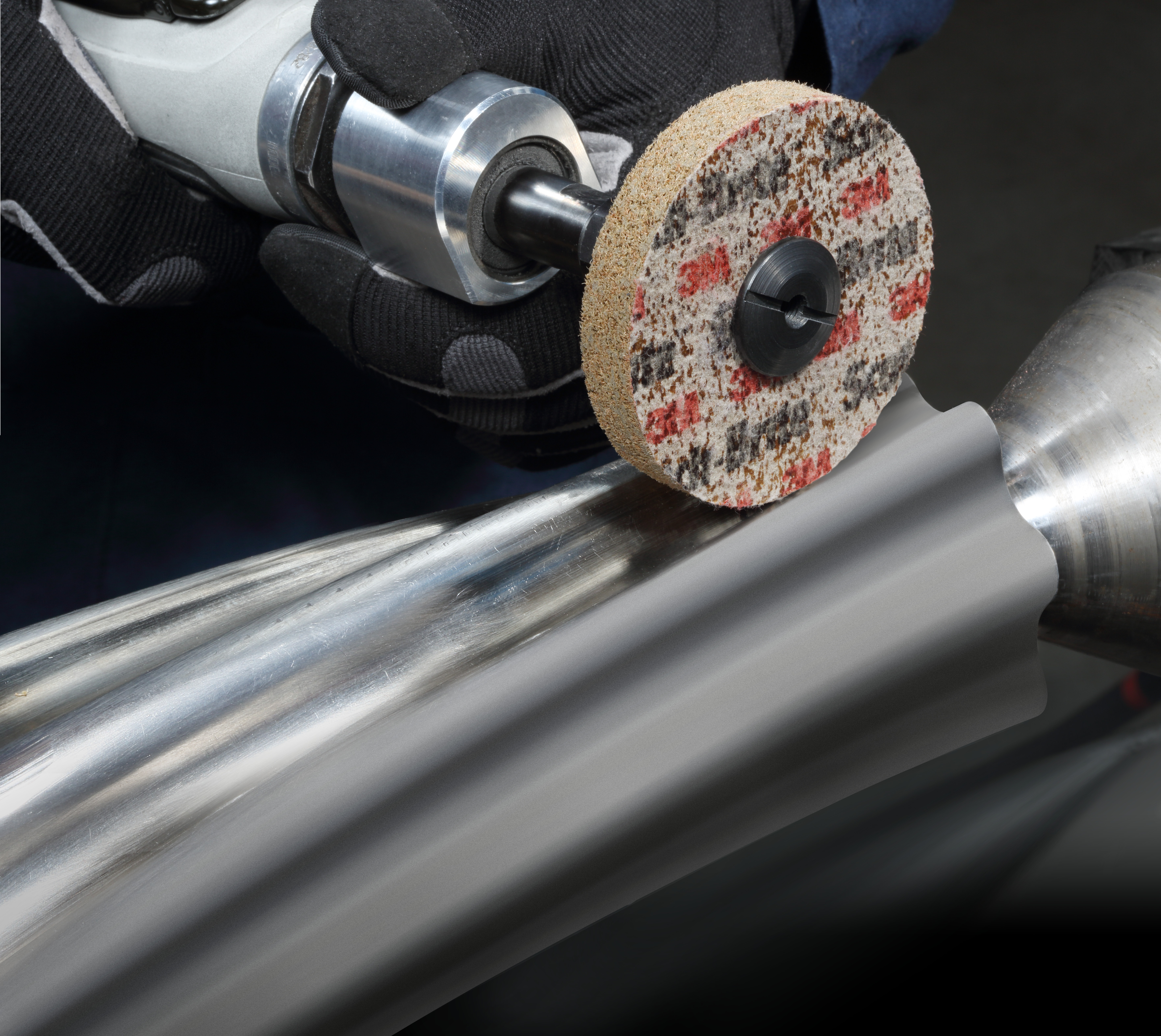 Discover the Scotch-Brite™ Advantage Nonwoven technology makes Scotch-Brite™ abrasives unique. Abrasive mineral is interspersed on synthetic fibers using resin — creating an open web construction. Spaces between the fibers permit excess material to escape, so the mineral does not become worn down by debris. It keeps the mineral cutting sharper longer, enhancing cut performance and increasing abrasive service life. The spring-like nature of the fibers works well on contours and responds to subtleties on the surface. Its responsive design effectively removes unwanted burrs, soils and contaminants without ruining the base material, so you get a consistent and uniform finish — part after part.