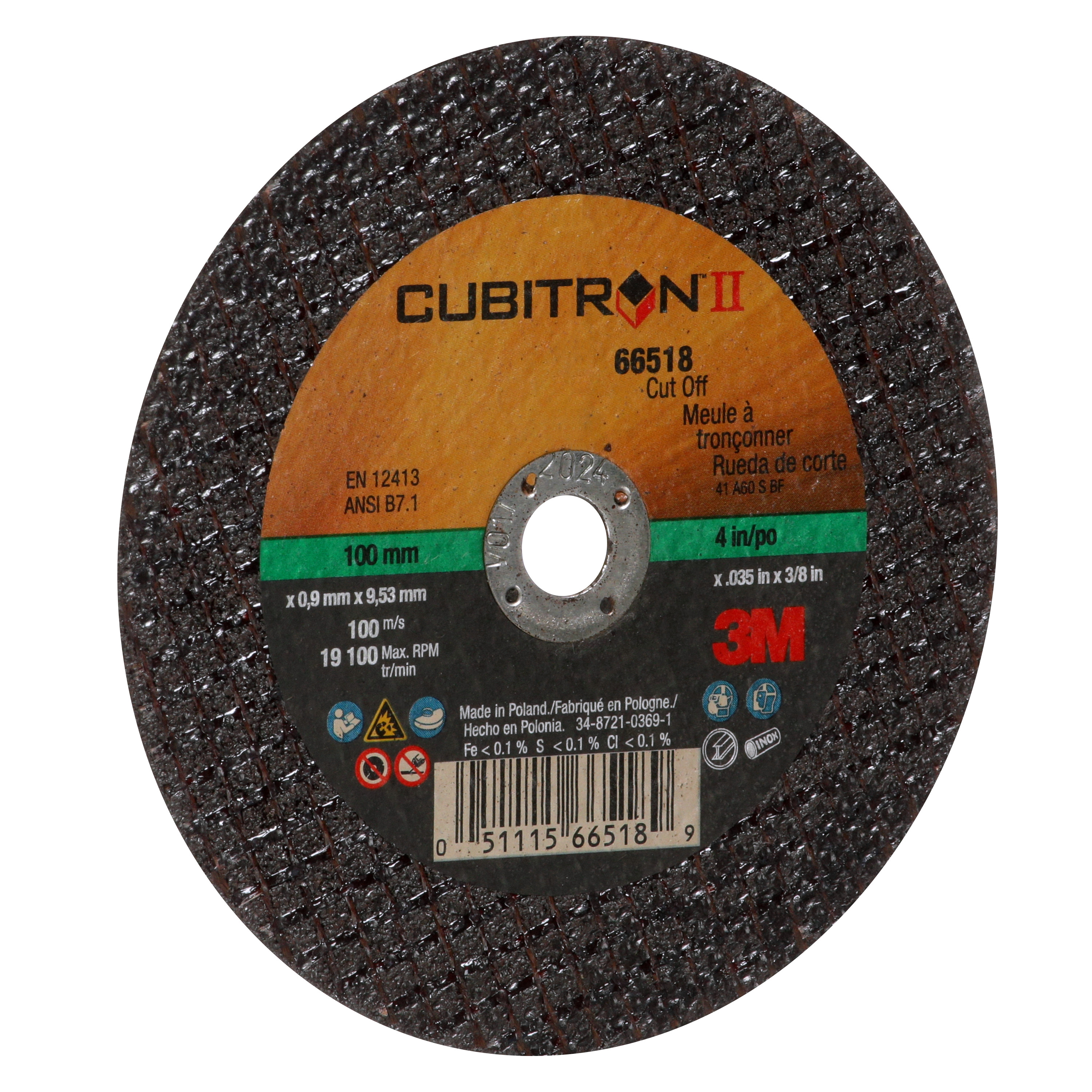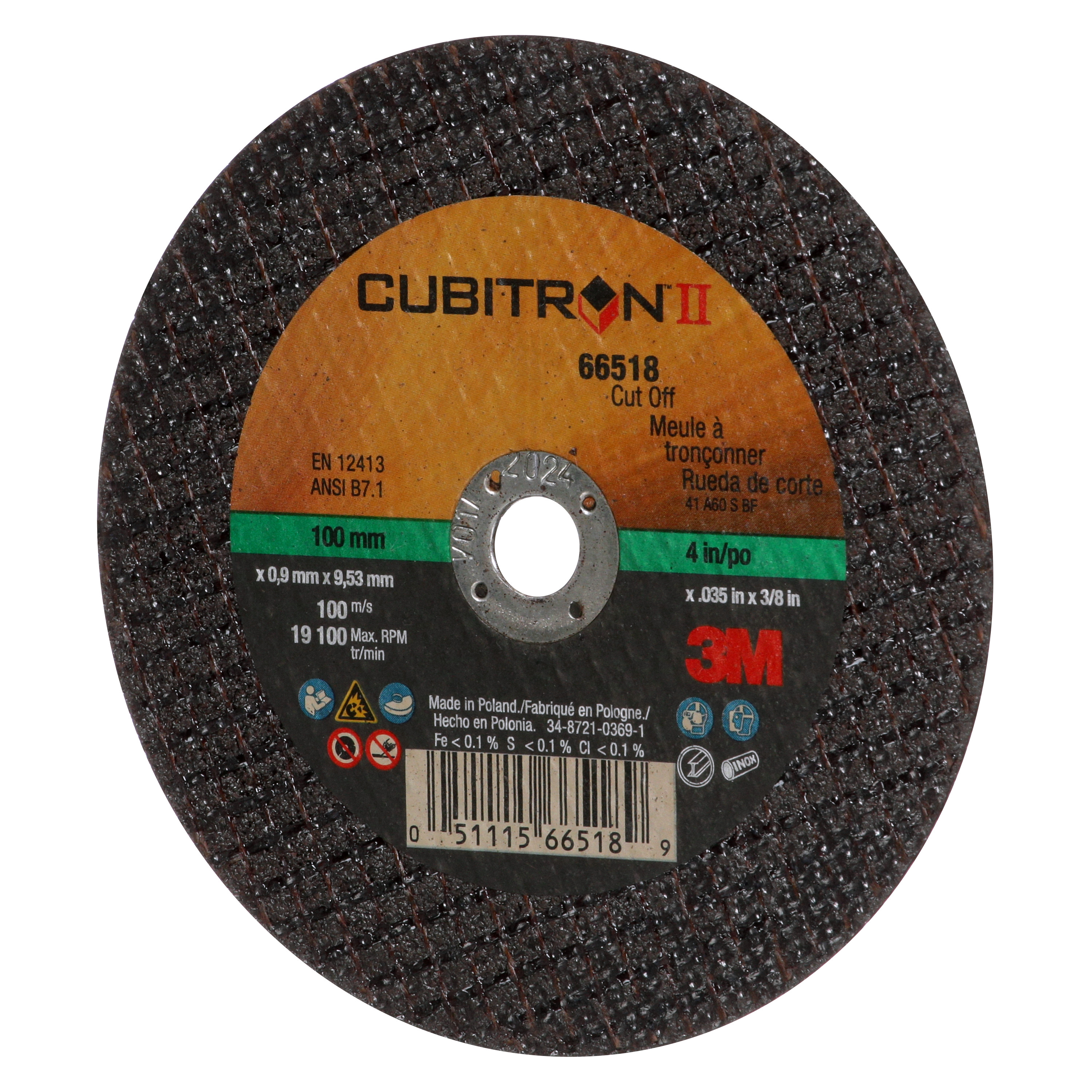3M™ Cubitron™ II Cut-Off Wheel, 66518, 60, Type 1, 4 in x 0.035 in x 3/8 in, 25/Carton, 50 ea/Case