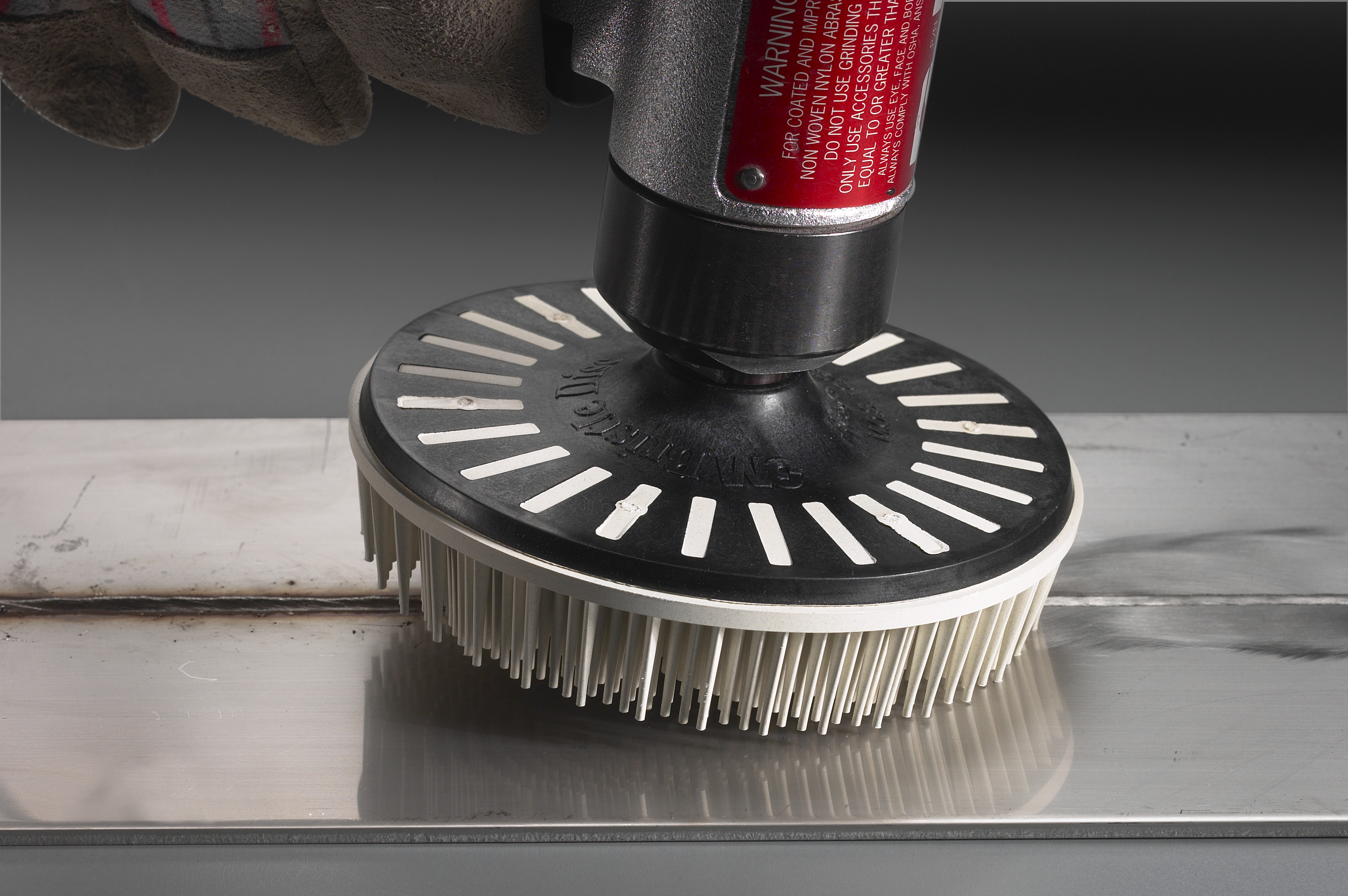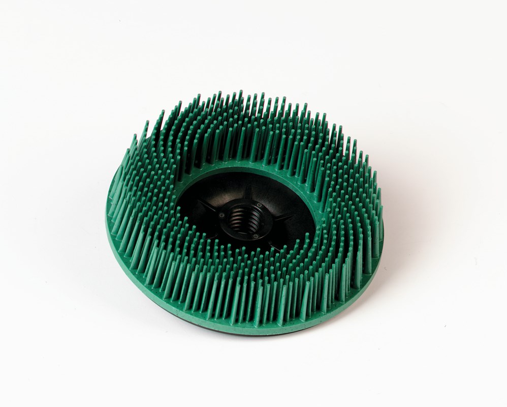 Scotch-Brite™ Bristle Disc is designed to last longer than wire and other abrasive discs and works well on aluminum, brass, bronze, carbon steel, cast iron, stainless steel, and other metals; and is used for general industrial, aerospace, automotive, metalworking, transportation, and automotive applications. Under normal use, the flexible bristles remain safely in place and can achieve the desired finish using light pressure.