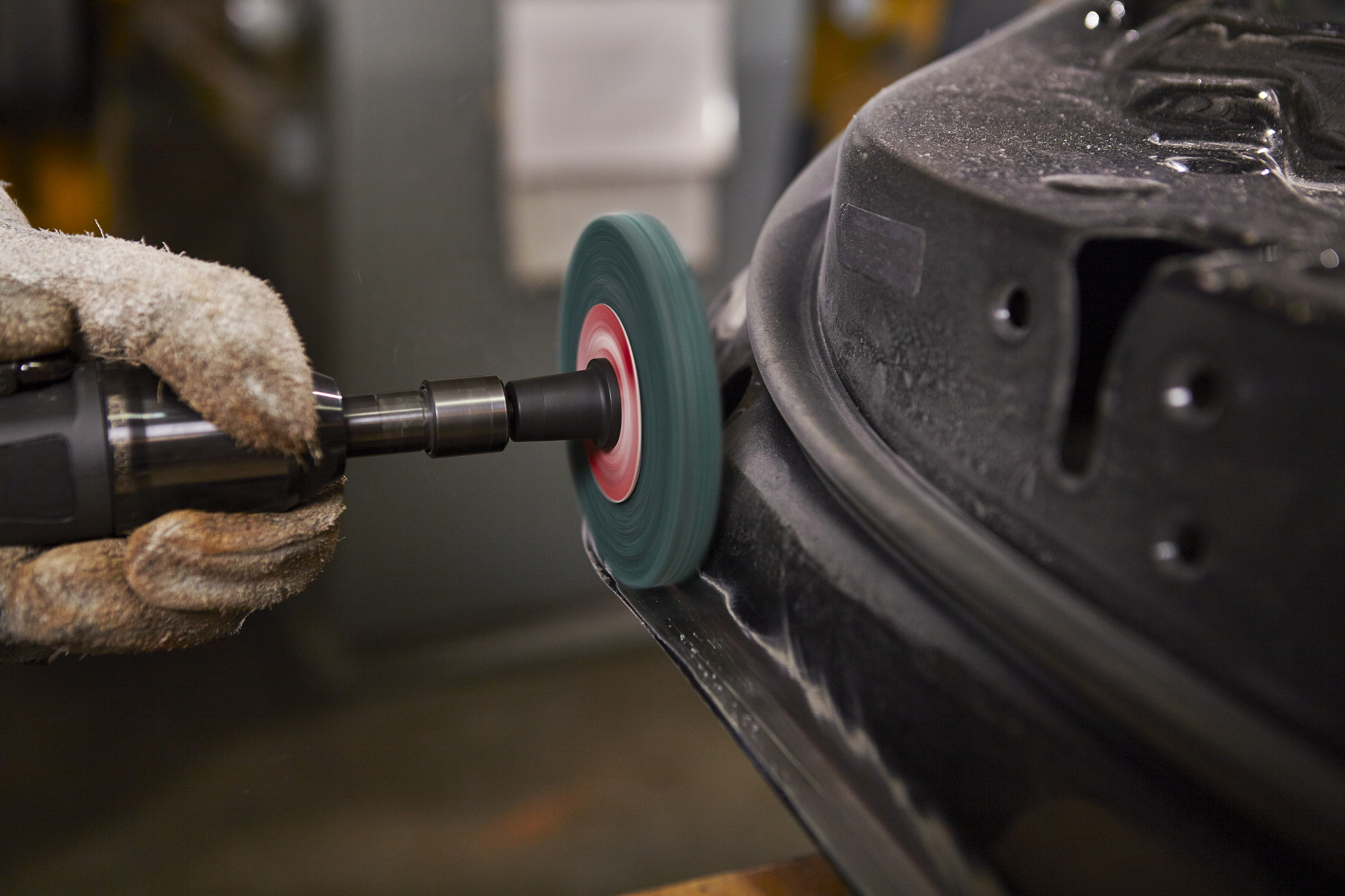 3M designed their Scotch-Brite™ Roloc™+ Clean and Strip Pro Extra Cut with aluminum oxide abrasive mineral because of its ability to remove heavy coatings and scratches the base metal underneath without leaving divots. This means that operators can remove a coating from a workpiece and get it ready for welding or adhesive application with the same disc – saving the time of switching abrasives.