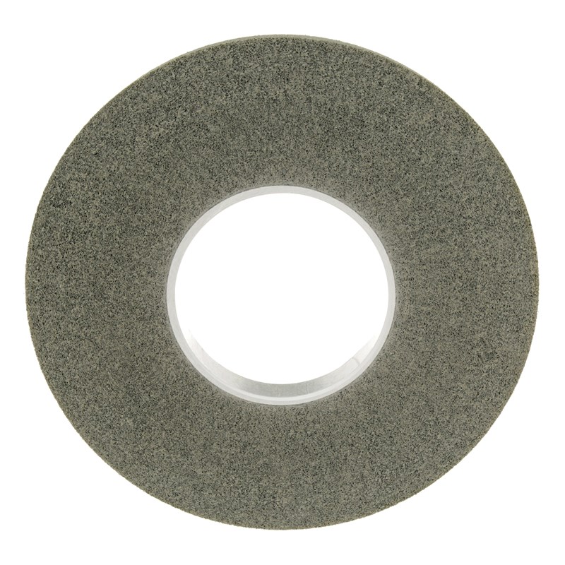 The wheel utilizes either silicon carbide or aluminum oxide – and are available in medium to hard densities, ranging from 8 to 10. Together, these properties combine to cut aggressively, maintain wheel shape and stand up to edges. Nylon fibers in the open web break down while deburring the surface, exposing fresh, sharp mineral. The wheel breakdown contributes to consistent cutting action. Gaps between the nylon fibers allow swarf and debris to escape, keeping the mineral sharp and preventing blunt or dull edges that might gouge or blemish the surface of the workpiece. Subsequently, smear-resistant finishes result.