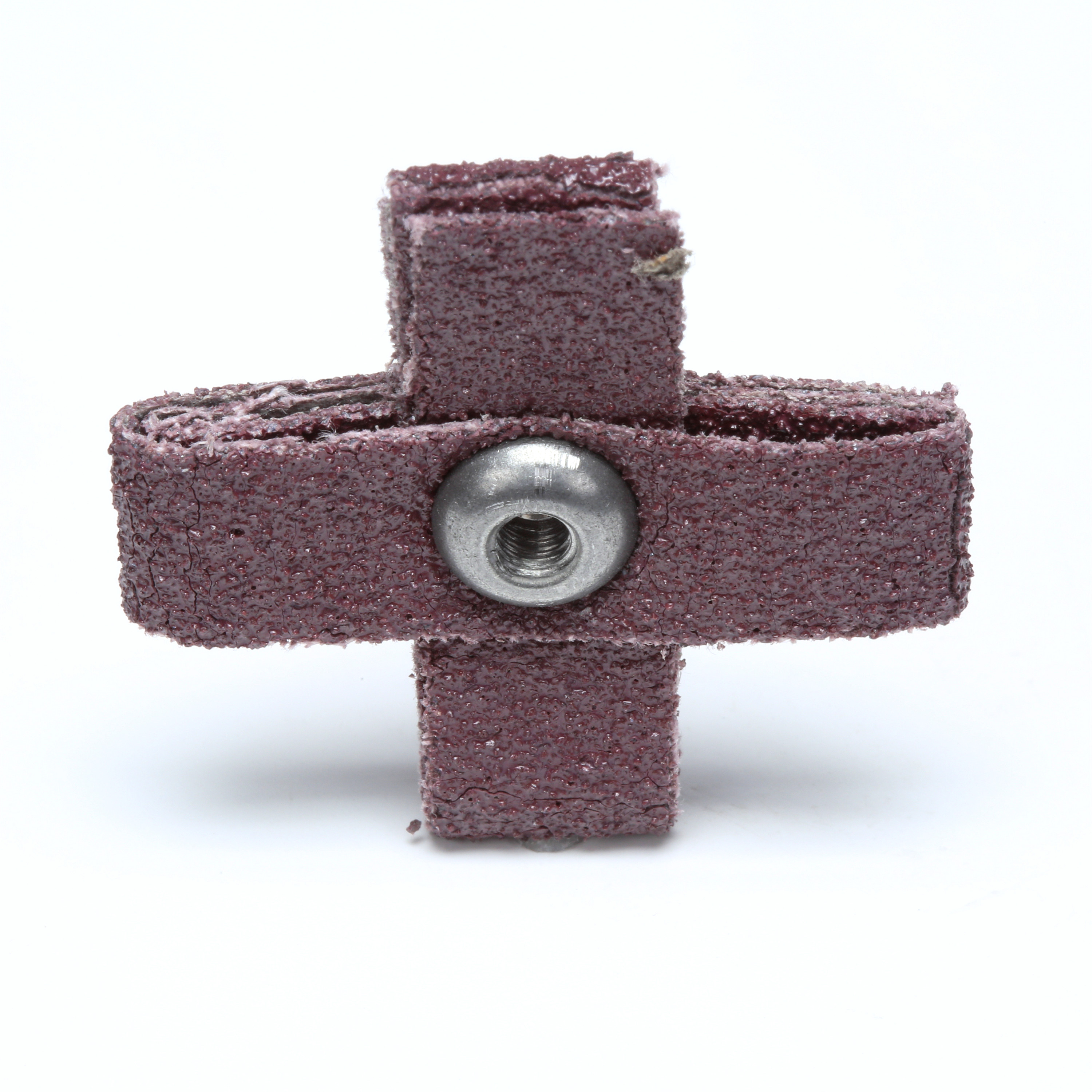 A cross pad attaches to a threaded mandrel (sold separately) that attaches to a rotary tool such as a die grinder or drill. Together, the mandrel and cross pad enable the user to grind or finish the inner contours of various-sized channels. Max RPM depends on the size of the pad.