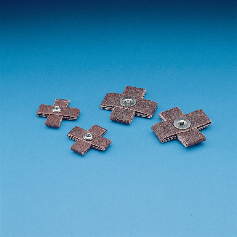 Designed for Tough Jobs The X-weight cloth backing of the 3M™ Cross Pad 747D supports both grinding and polishing applications. It has a closed coat of aluminum oxide abrasive secured with a heat-resistant resin bond. This cross pad works well where polishing or deburring is needed. The cross pad attaches to a threaded mandrel (sold separately) that attaches to a die grinder or power drill. Together, the mandrel and cross pad enable the user to grind or finish the inner contours of various-sized channels. Max RPM depends on the size of the pad.