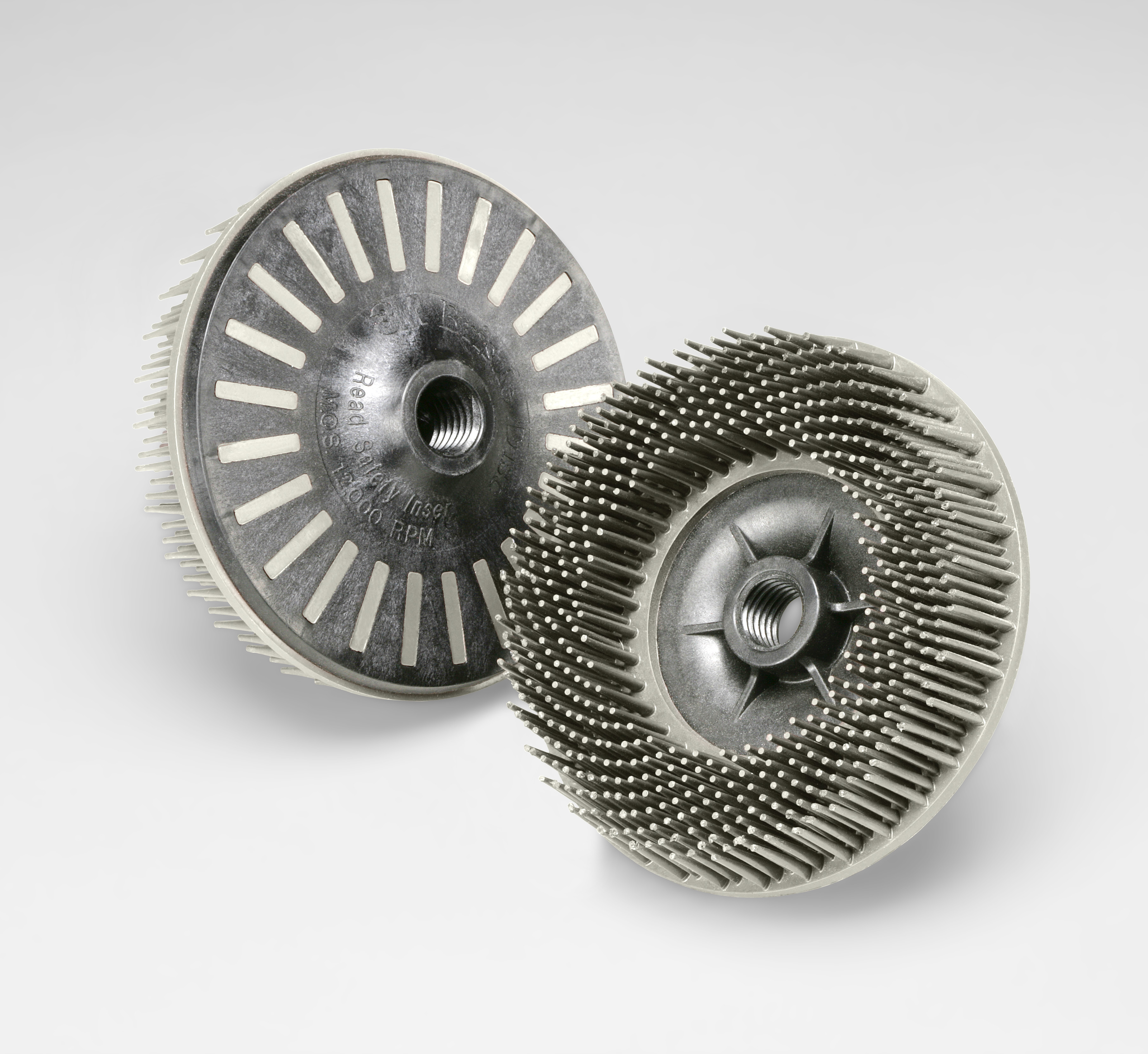 Scotch-Brite™ Bristle Disc is designed to last longer than wire and other abrasive discs and works well on aluminum, brass, bronze, carbon steel, cast iron, stainless steel, and other metals; and is used for general industrial, aerospace, automotive, metalworking, transportation, and automotive applications. Under normal use, the flexible bristles remain safely in place and can achieve the desired finish using light pressure.