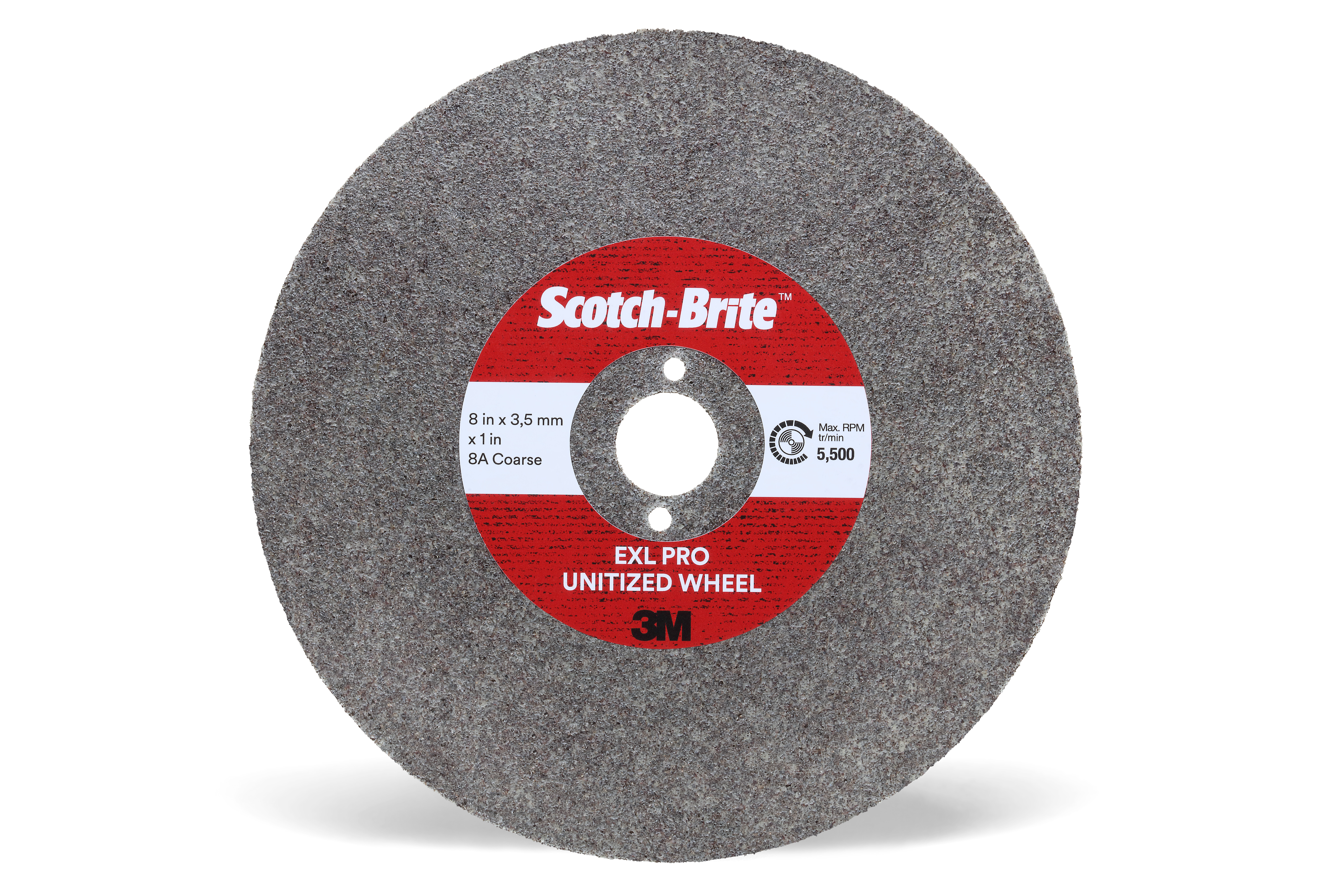 All Products>Abrasives>Scotch-Brite™ EXL PRO Unitized Wheel, EX-UW, 8A Coarse, 8 in x 4.2 mm x 1-1/2 in, 10 ea/Case