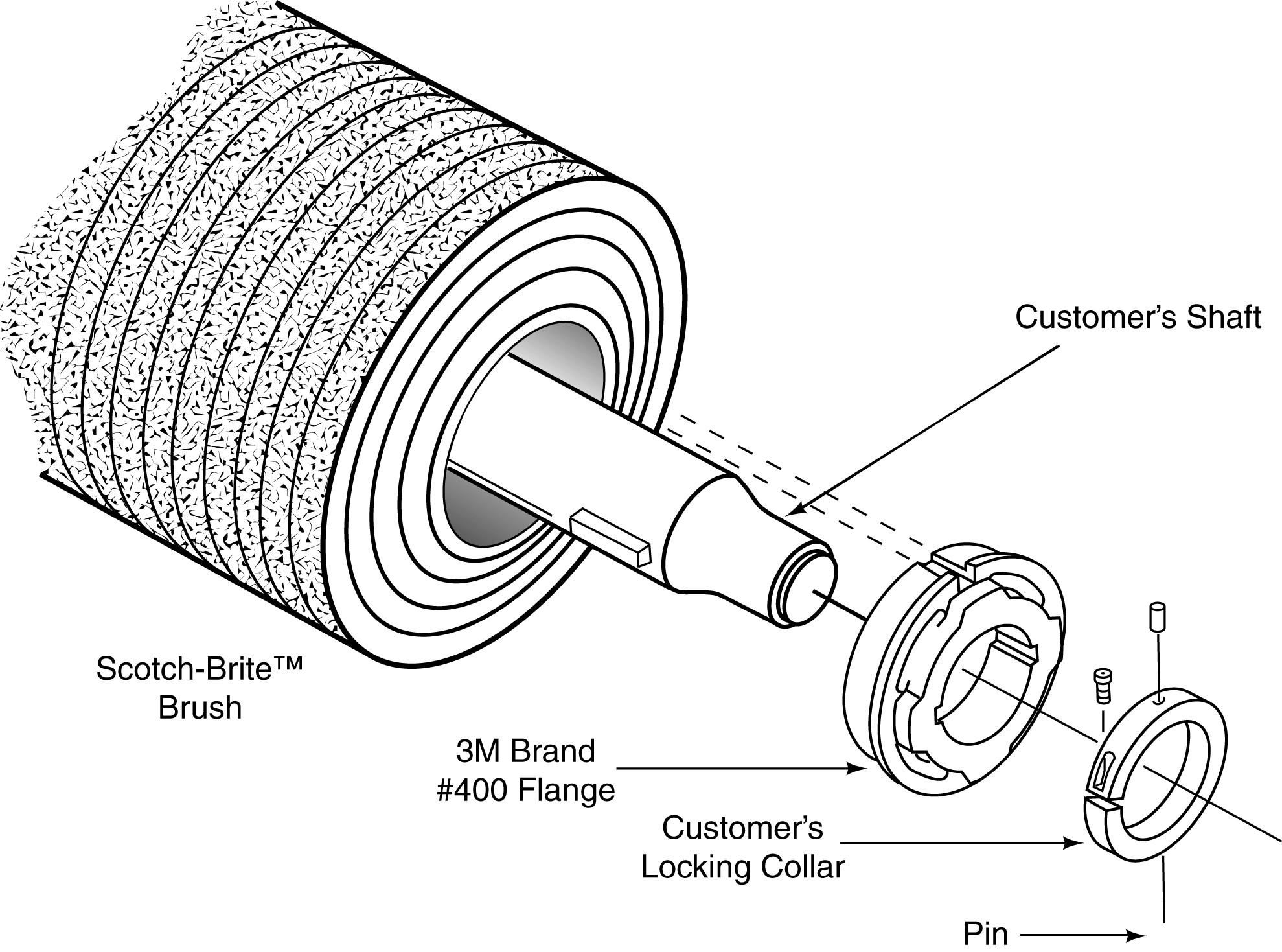 Scotch-Brite™ cleaning brushes are engineered by attaching circular sections of non-woven material to a cylindrical core. Typical applications for cleaning brushes include coil cleaning prior to coating, deburring, reclaiming sheet and coil and scale / oxide removal. The Scotch-Brite™ brush has an arbor hole to accommodate a shaft and may be secured in place with a flange and key. It will not fray or splinter when faced with edges. The steel core on the brush keeps it sturdy and adds a level of durability to the brush when it's run on finishing equipment. Operators may choose to add a lubricant or coolant when cleaning, because it helps wash away swarf and reduce loading, which extends the brush's service life.