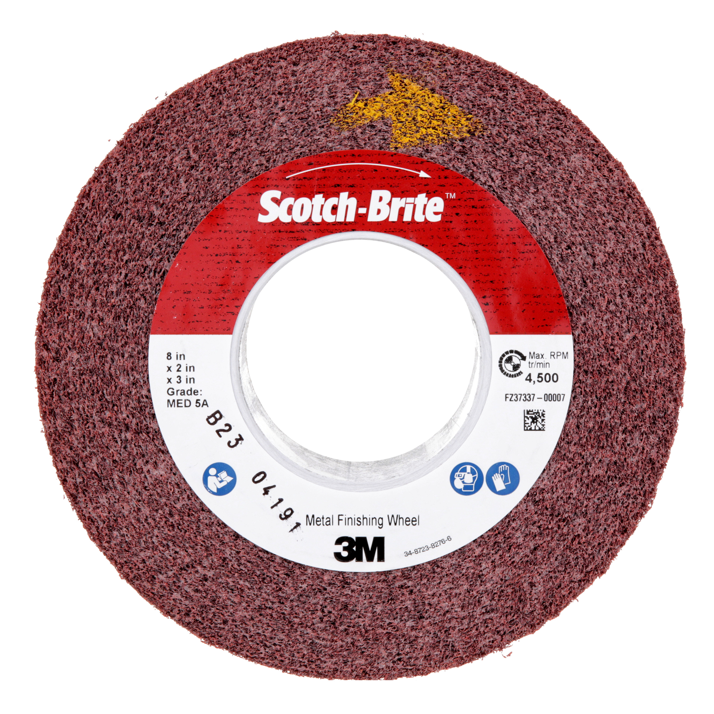All Products>Abrasives>Scotch-Brite™ Metal Finishing Convolute Wheel, MF-WL, 5A Medium, 8 in x 2 in x 3 in, 2 ea/Case
