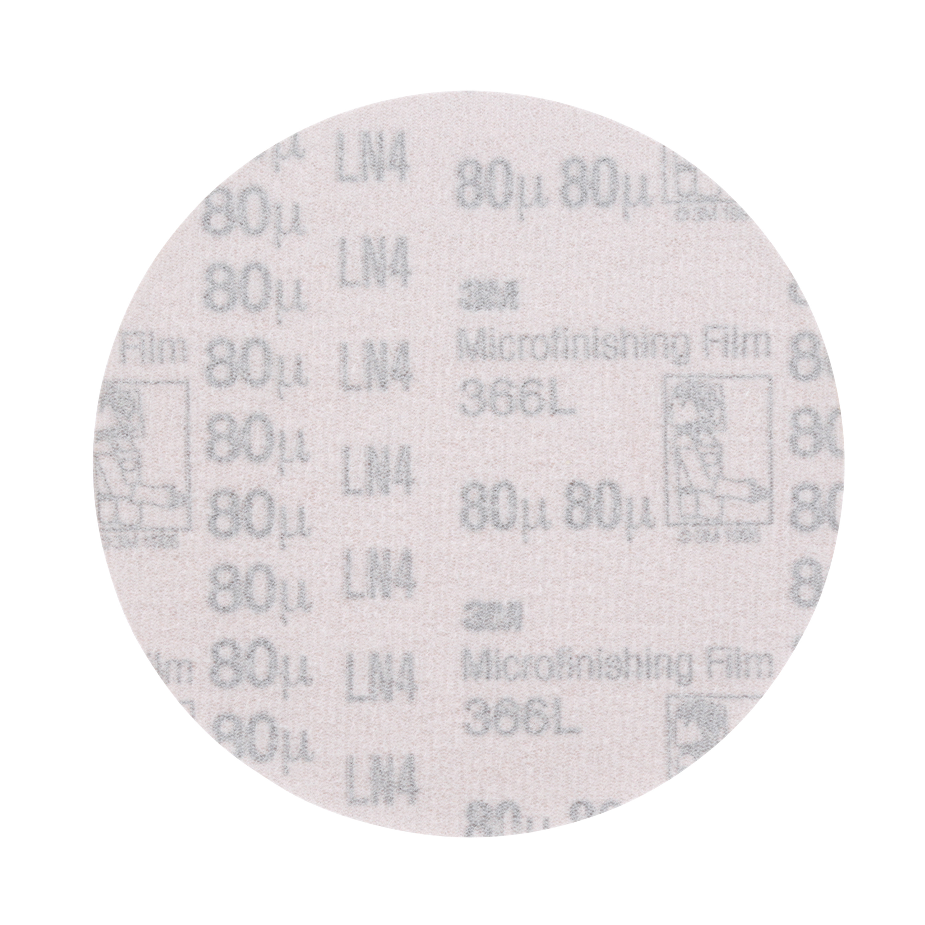 The 3M™ Microfinishing PSA Film Disc 366L features precision, micron-graded aluminum oxide, which is a popular choice among industrial professionals because of its fast cut-rate and long life. This mineral makes a tough, durable abrasive that self-fractures to expose fresh cutting edges, whereas traditional natural abrasives dull more quickly. Due to its fast cut-rate, hardness, and strength, it is widely used in grinding applications in addition to sanding and finishing applications. Aluminum oxide is suitable for a wide variety of materials in both woodworking and metalworking, including ferrous alloys.