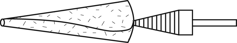 Often used in critical production and maintenance operations, as well as low-pressure blending, polishing, cleaning and deburring, tapered Cone Points offer easy accessibility to tight areas for more precise grinding. Tapered Cone Points can attach to mandrels of varying lengths to match the application. The sizing codes are: