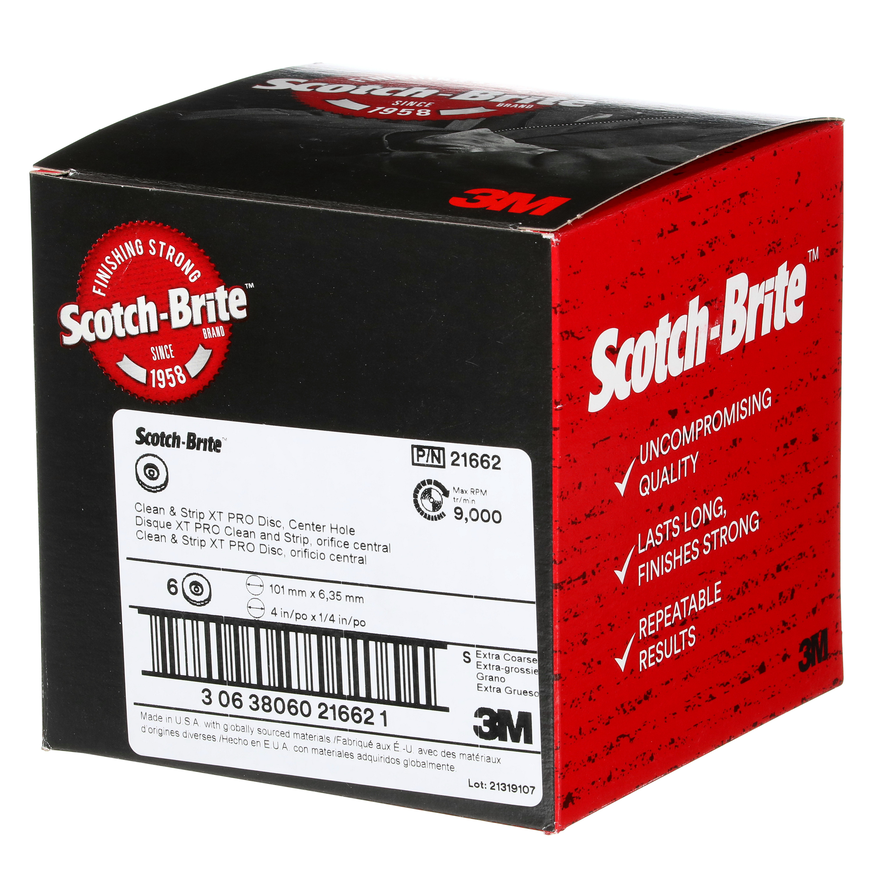 Scotch-Brite™ Clean and Strip XT Pro Disc, XO-DC, SiC Extra Coarse, Purple, 4 in x 1/4 in, 6/Carton, 24 ea/Case