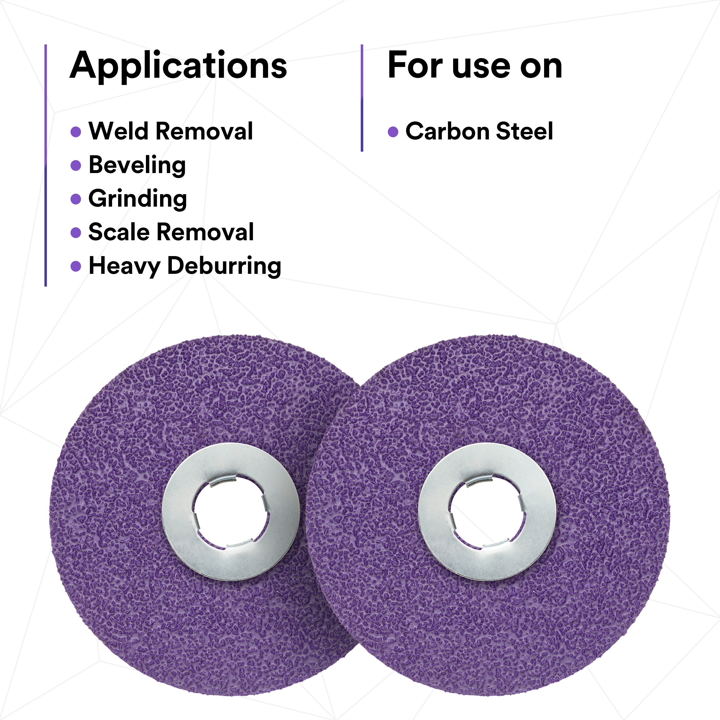 - RECOMMENDED APPLICATIONS: Designed for heavy metal removal, scale removal, weld grinding, beveling/chamfering, and heavy deburring. For use on carbon steel