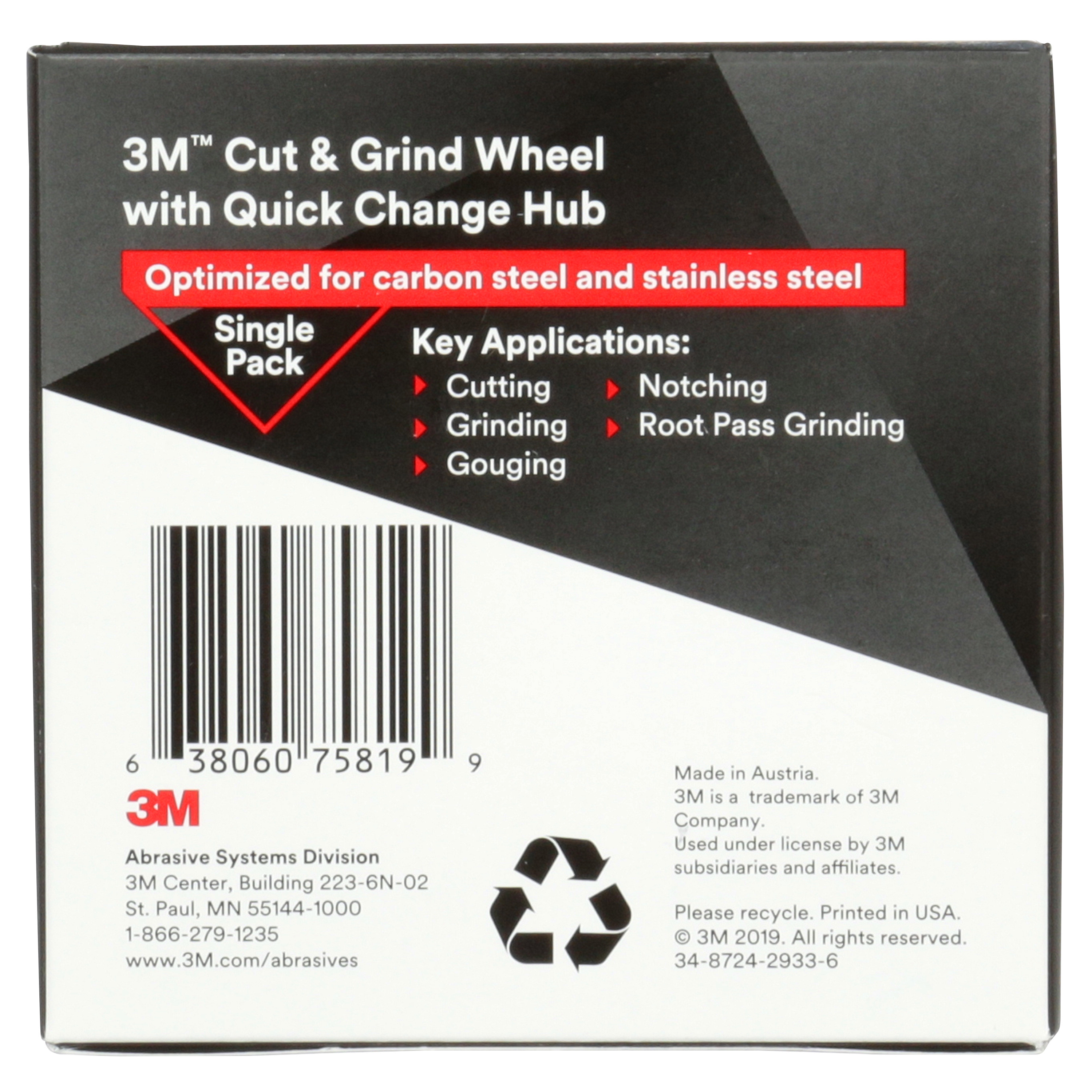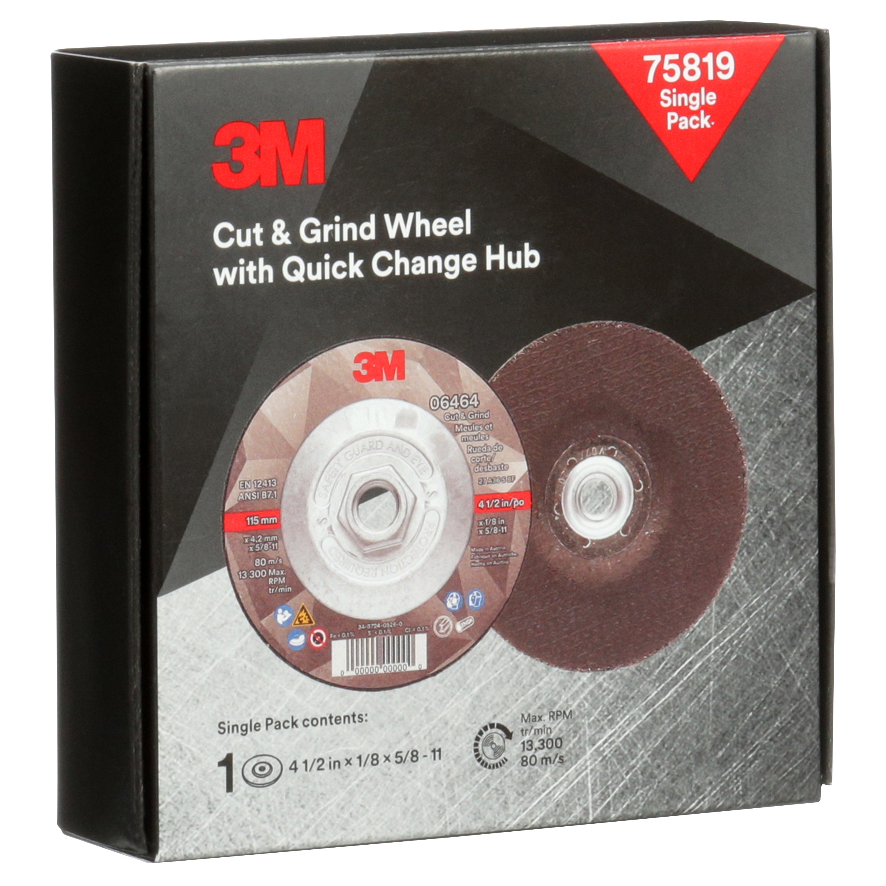 All Products>Abrasives>3M™ Cut & Grind Wheel, 75819, 36+, T27, 4-1/2 in x 1/8 in x 5/8 in-11, 10/ ea/Case, Single Pack