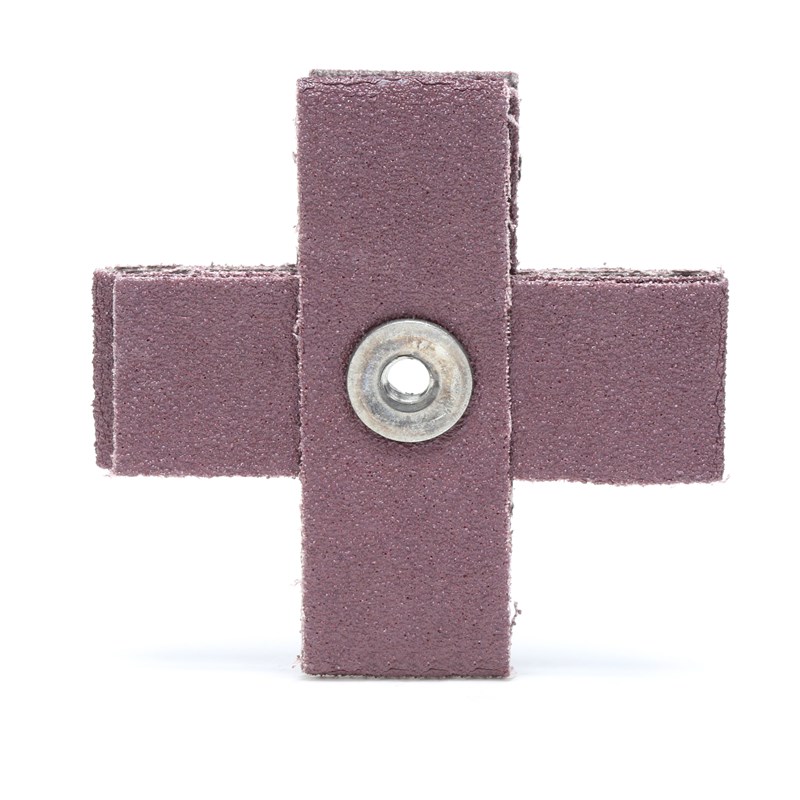 A cross pad attaches to a threaded mandrel (sold separately) that attaches to a rotary tool such as a die grinder or drill. Together, the mandrel and cross pad enable the user to grind or finish the inner contours of various-sized channels. Max RPM depends on the size of the pad.