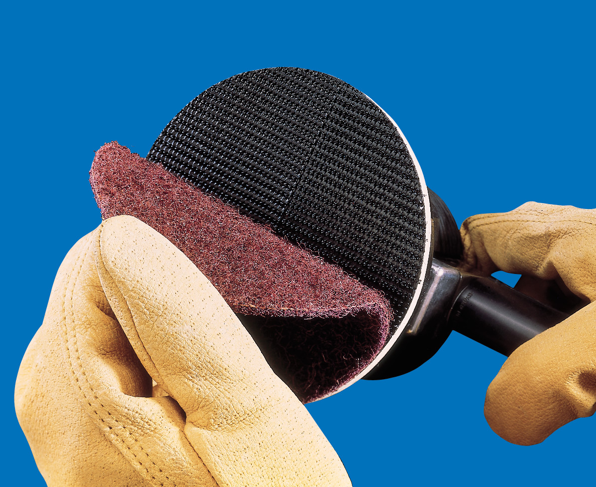 The Scotch-Brite™ Advantage Non-woven technology makes Scotch-Brite™ abrasives unique. The abrasive mineral is interspersed on synthetic fibers using resin – creating an open web construction. Spaces between the fibers permit excess material to escape, so the mineral does not get worn down by debris. It keeps the mineral cutting sharper longer, enhancing cut performance and increasing abrasive service life. The spring-like nature of the fibers works well on contours and responds to subtleties on the surface. Its responsive design effectively removes unwanted burrs, soils and contaminants without ruining the base material, so you get a consistent and uniform finish – part after part.