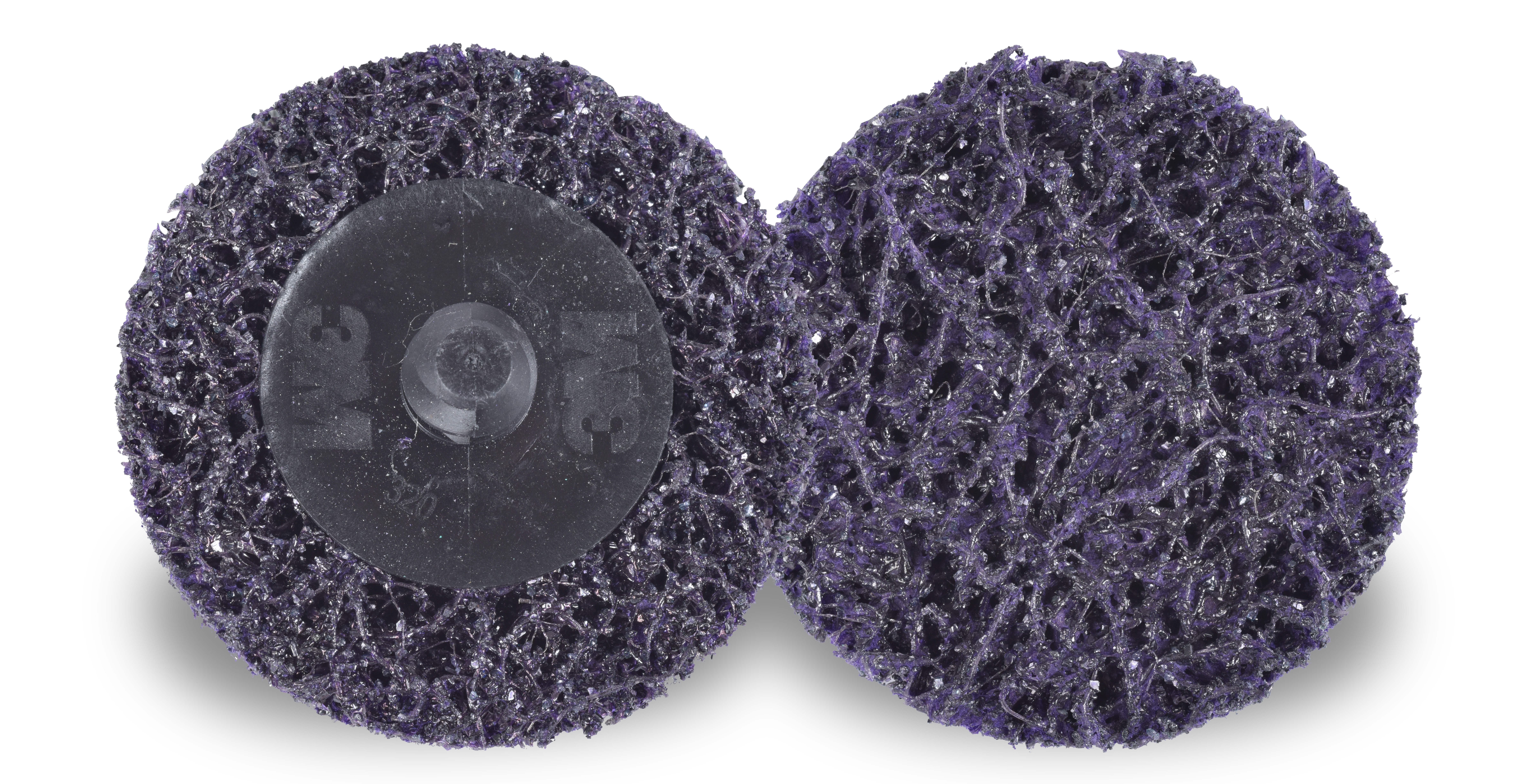 To engineer the Scotch-Brite™ Roloc™ Clean and Strip XT Pro Disc, silicon carbide mineral is combined with non-woven nylon fibers using resin. Silicon carbide is a very sharp synthetic mineral commonly used in low-pressure applications like paint prep. The resin bond strengthens the disc and gradually breaks down to reveal new fibers and sharp mineral – delivering a consistent cut over the life of the abrasive.