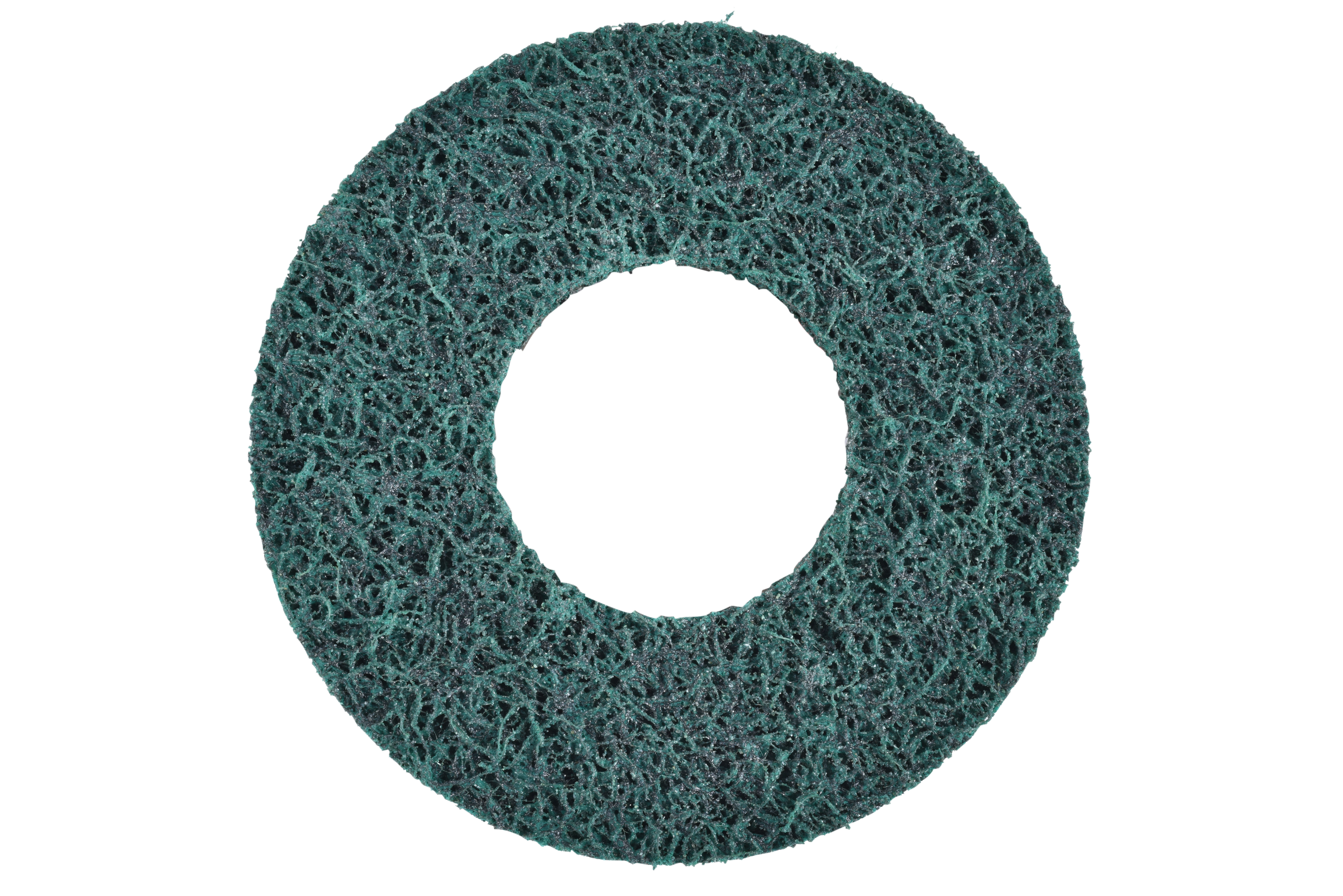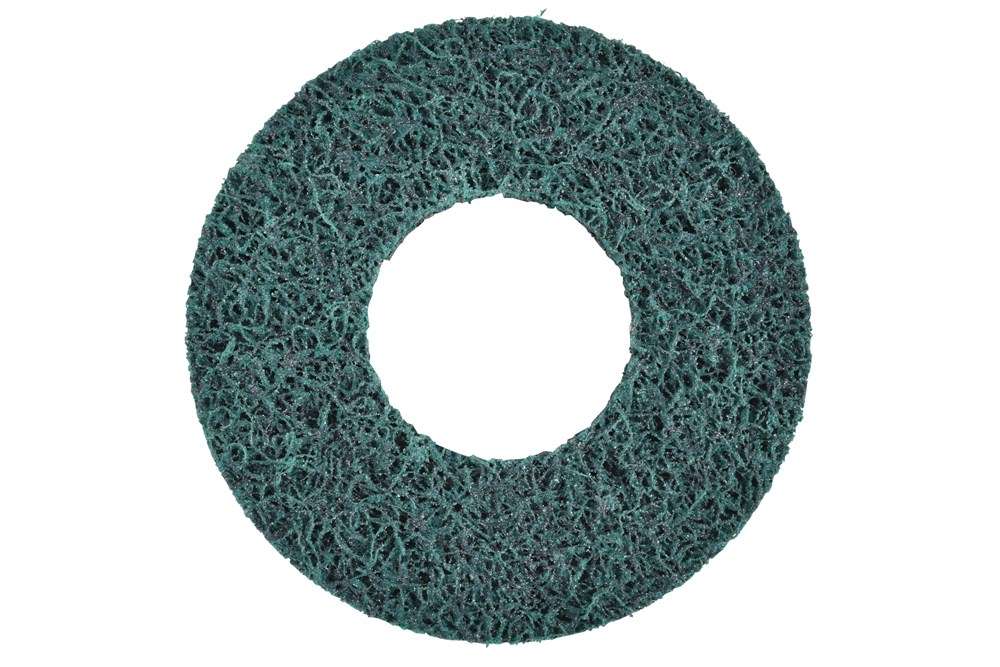 To engineer the Scotch-Brite™ Clean and Strip XT Pro Extra Cut Disc, aluminum oxide mineral is combined with non-woven nylon fibers using resin. Aluminum oxide is a very hard mineral that delivers a high cut rate, commonly used in high-pressure applications like cutting and weld removal. The resin bond strengthens the fiber web and allows it to gradually break down to reveal new fibers and sharp mineral – delivering a consistent cut over the life of the abrasive. The combination of fiber strands, resin and abrasive mineral forms a thick, open web. Gaps in the web allow swarf to escape, minimizing loading of the abrasive.