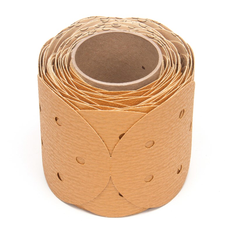 3M™ Stikit™ Paper Disc Roll 363I discs consist of tough aluminum oxide abrasive particles in a range of grit values bonded with resin on a heavy F-weight paper backing. They are well suited for stock removal and metal finishing, as well as random orbital sanding on both hardwoods and softwoods. The 3M™ Stikit™ Paper Disc Roll 363I disc resists wear during aggressive sanding, and its open-coat construction helps prevent clogging to maximize cut and the useful life of the disc.