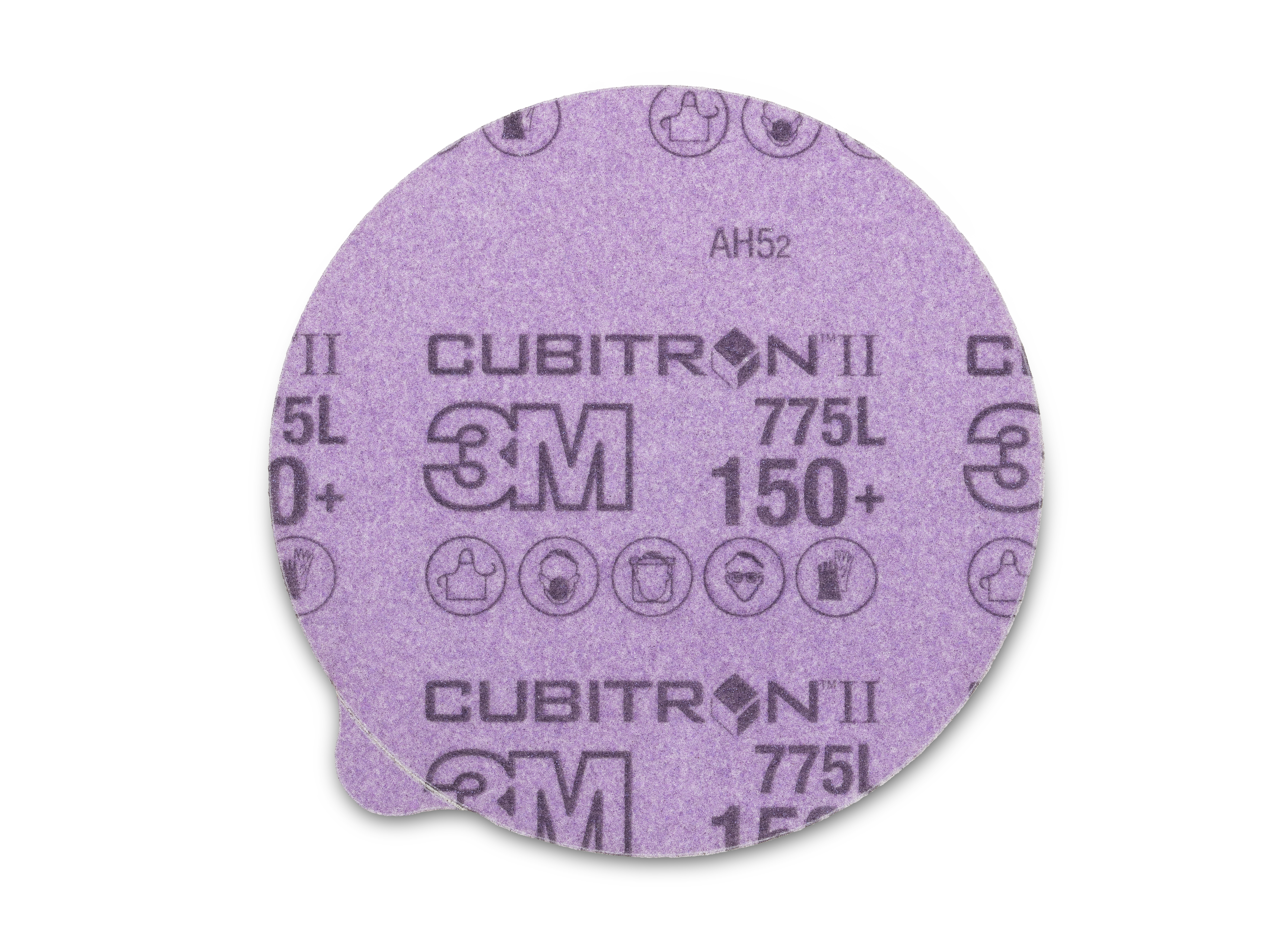 All Products>Abrasives>3M™ Cubitron™ II Stikit™ Film Disc 775L, 150+, 6 in x NH, Linered w/Tab, Die 600Z, 50/Carton, 250 ea/Case