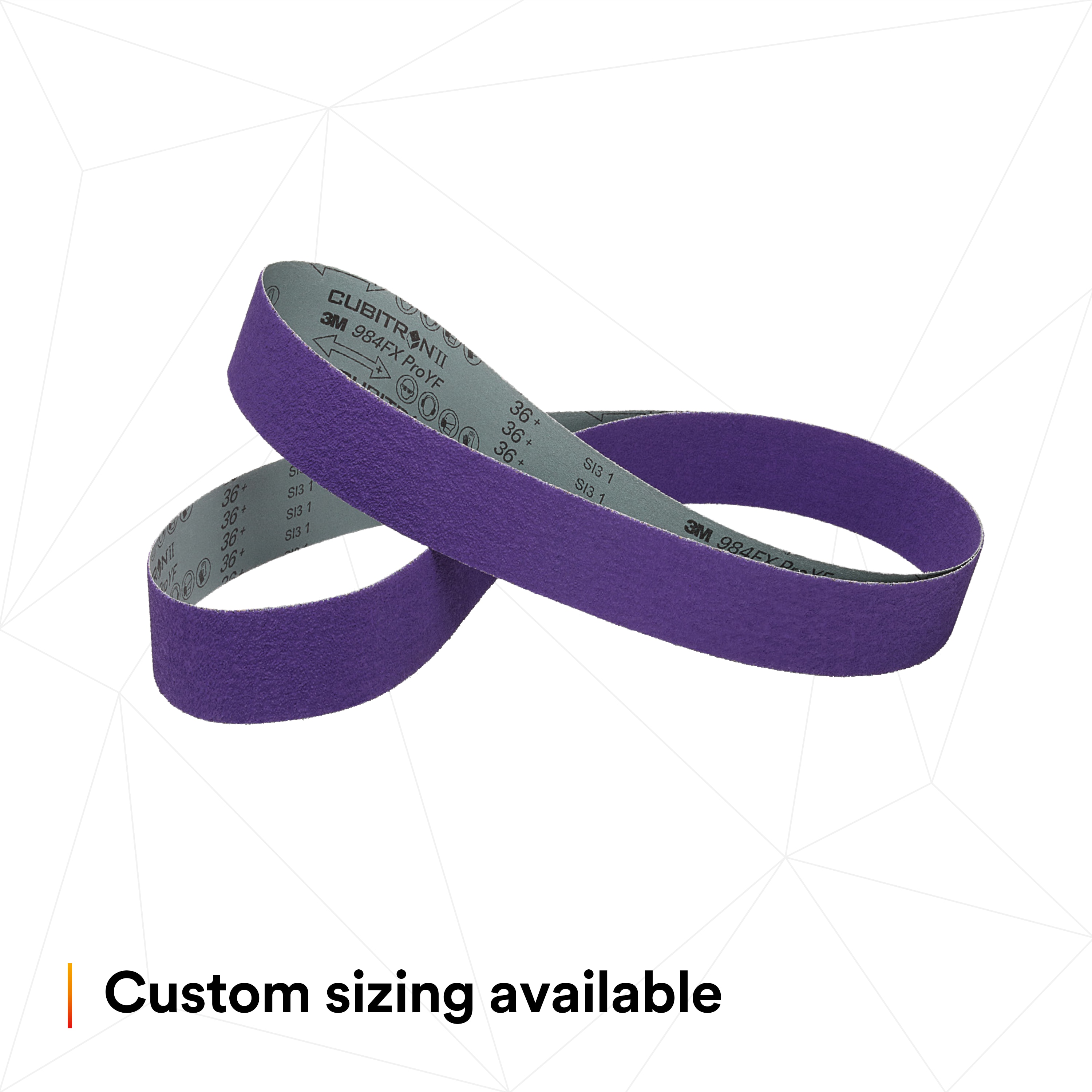 All Products>Abrasives>3M™ Cubitron™ II Cloth Belt 984FX Pro, 36+ YF-weight, 12 in x 180 in, Film-lok, Single-flex, 5 ea/Case