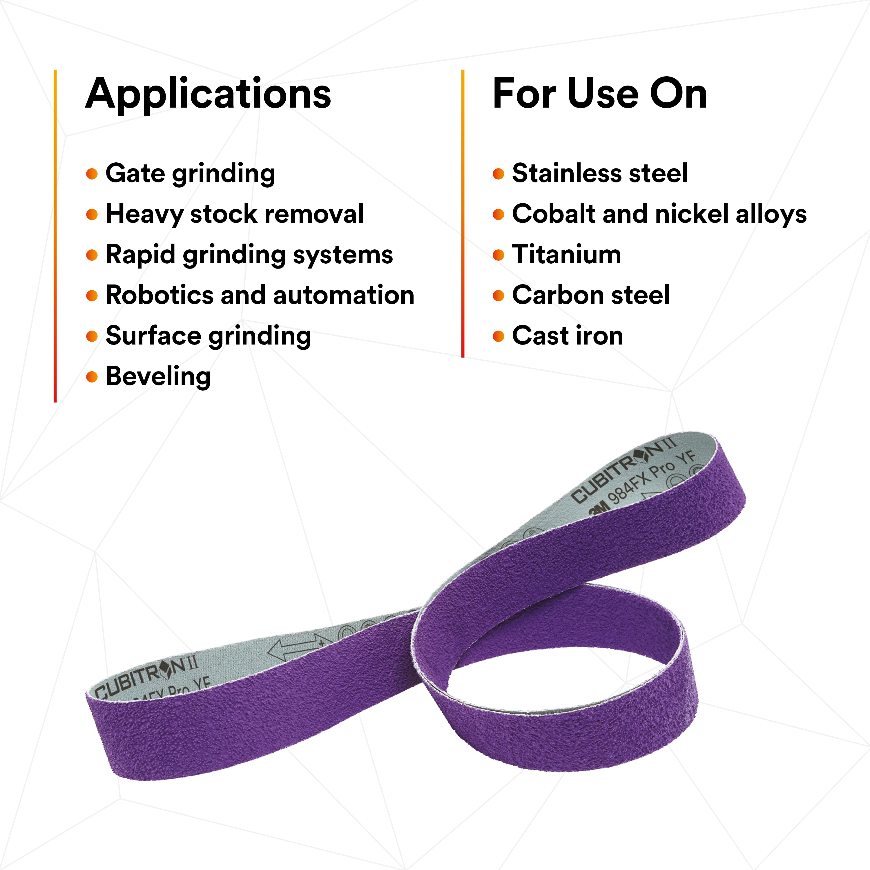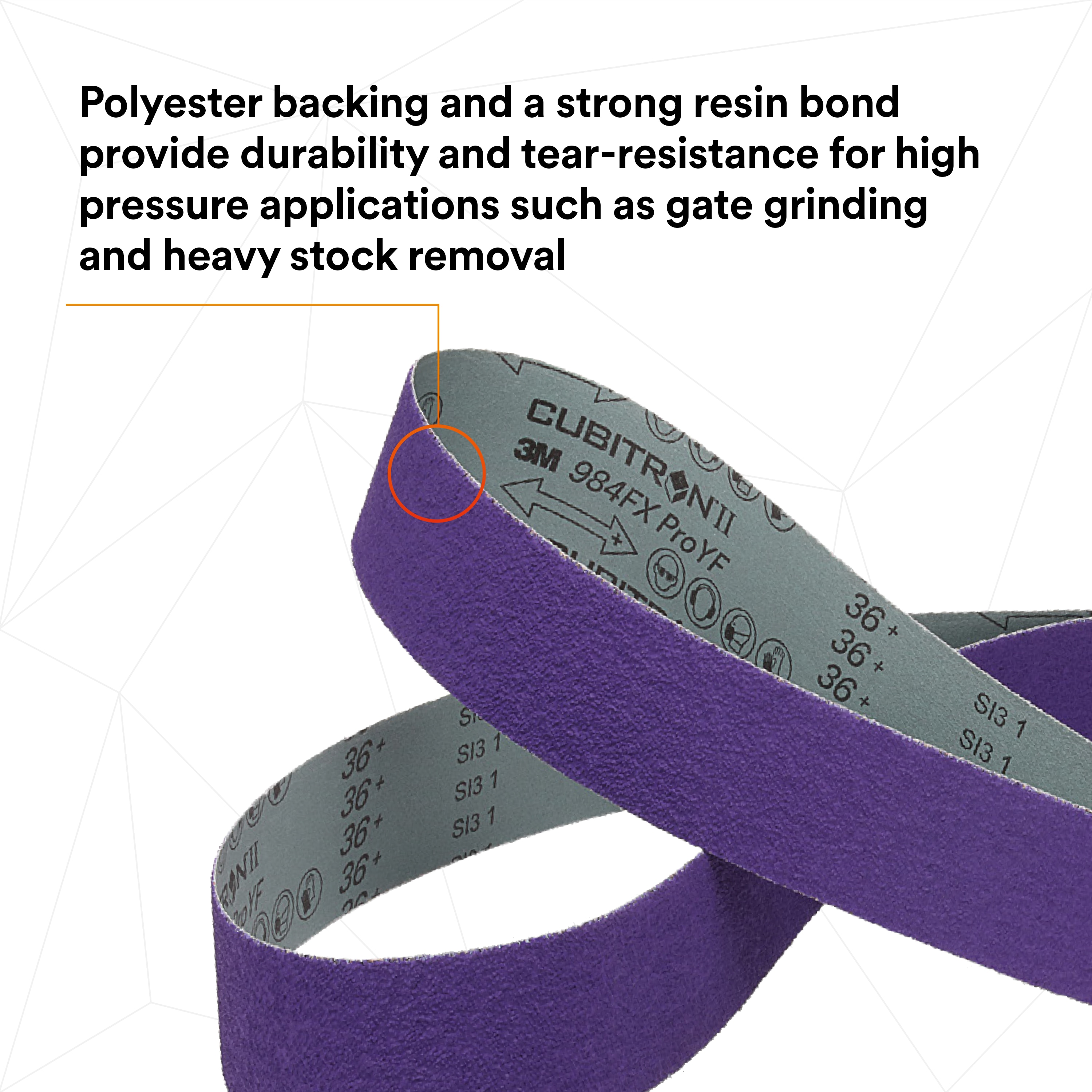 3M™ Cubitron™ II Cloth Belt 984FX Pro, 36+ YF-weight, 12 in x 180 in, Film-lok, Single-flex, 5 ea/Case