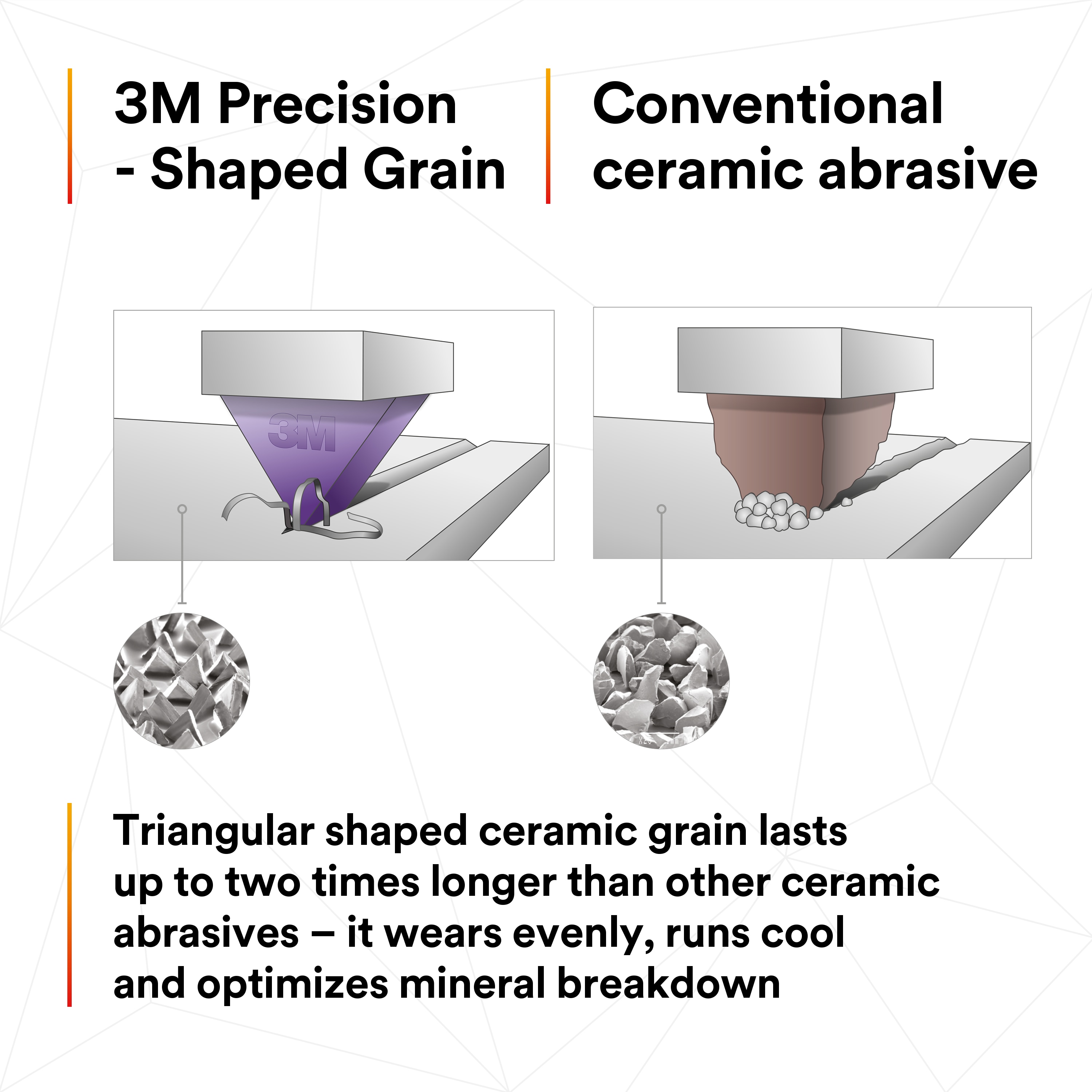 LEGENDARY SPEED AND LIFE: Re-engineered 3M Precision-Shaped Grain takes legendary speed and life to a new level. Triangular ceramic grain wears evenly, runs cool and stays sharp through the life of the belt
