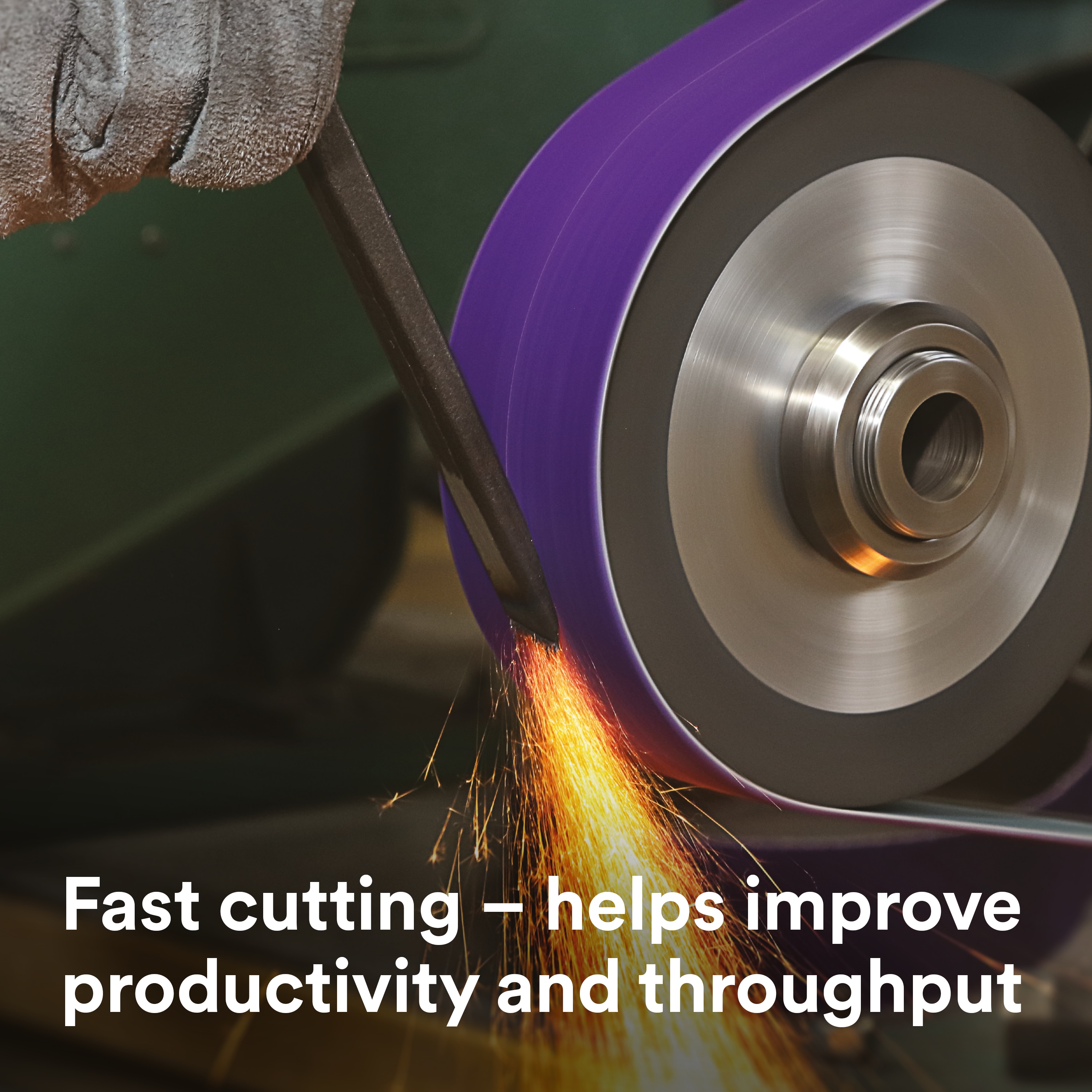BOOST PRODUCTIVITY: Longest-lasting, fastest-cutting 3M grinding belt helps boost productivity and minimize belt changes in manual and automated applications. Cuts with less pressure, helping reduce the demands on operators