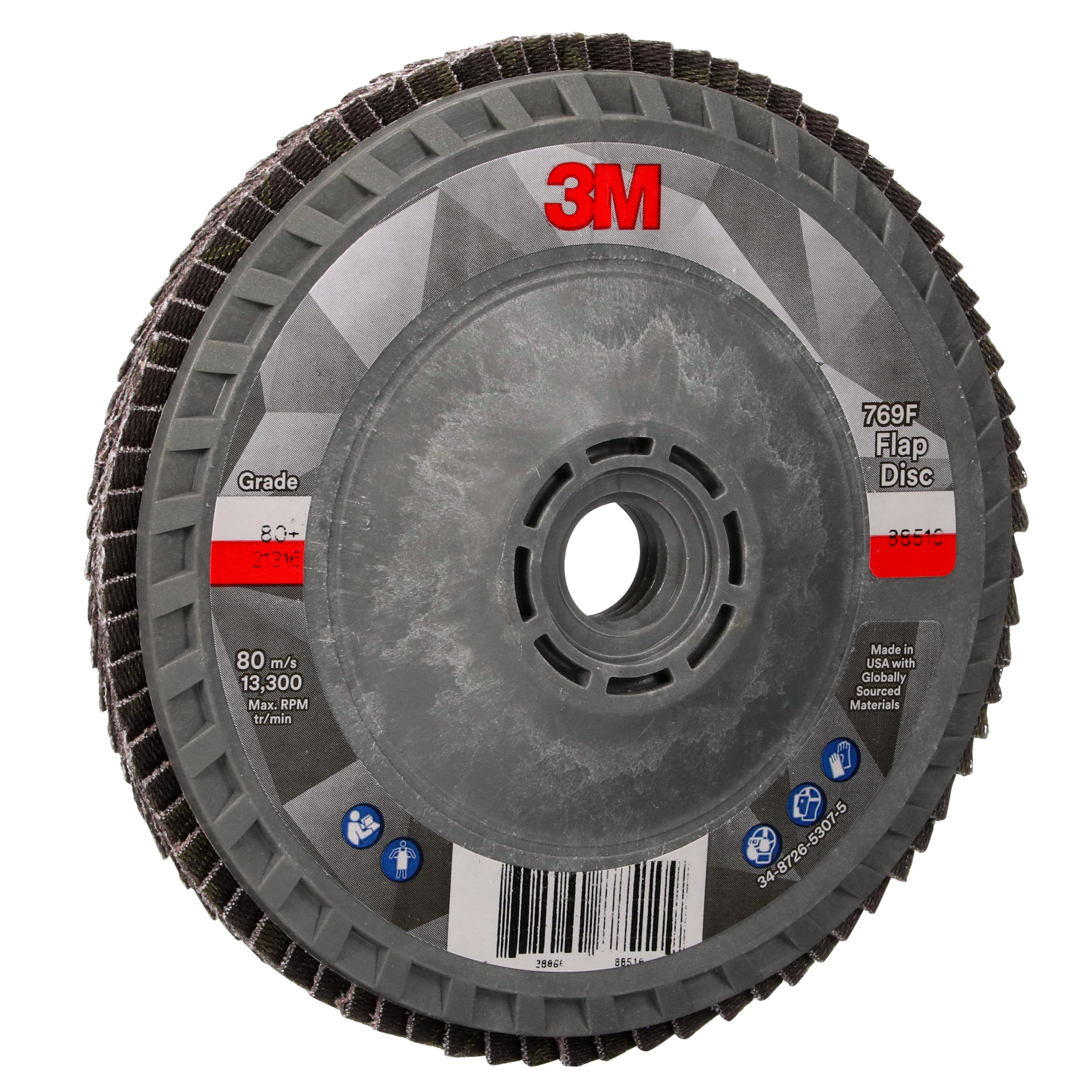 3M™ Flap Disc 769F, 80+, T27 Quick Change, 4-1/2 in x 5/8 in-11, 10 ea/Case