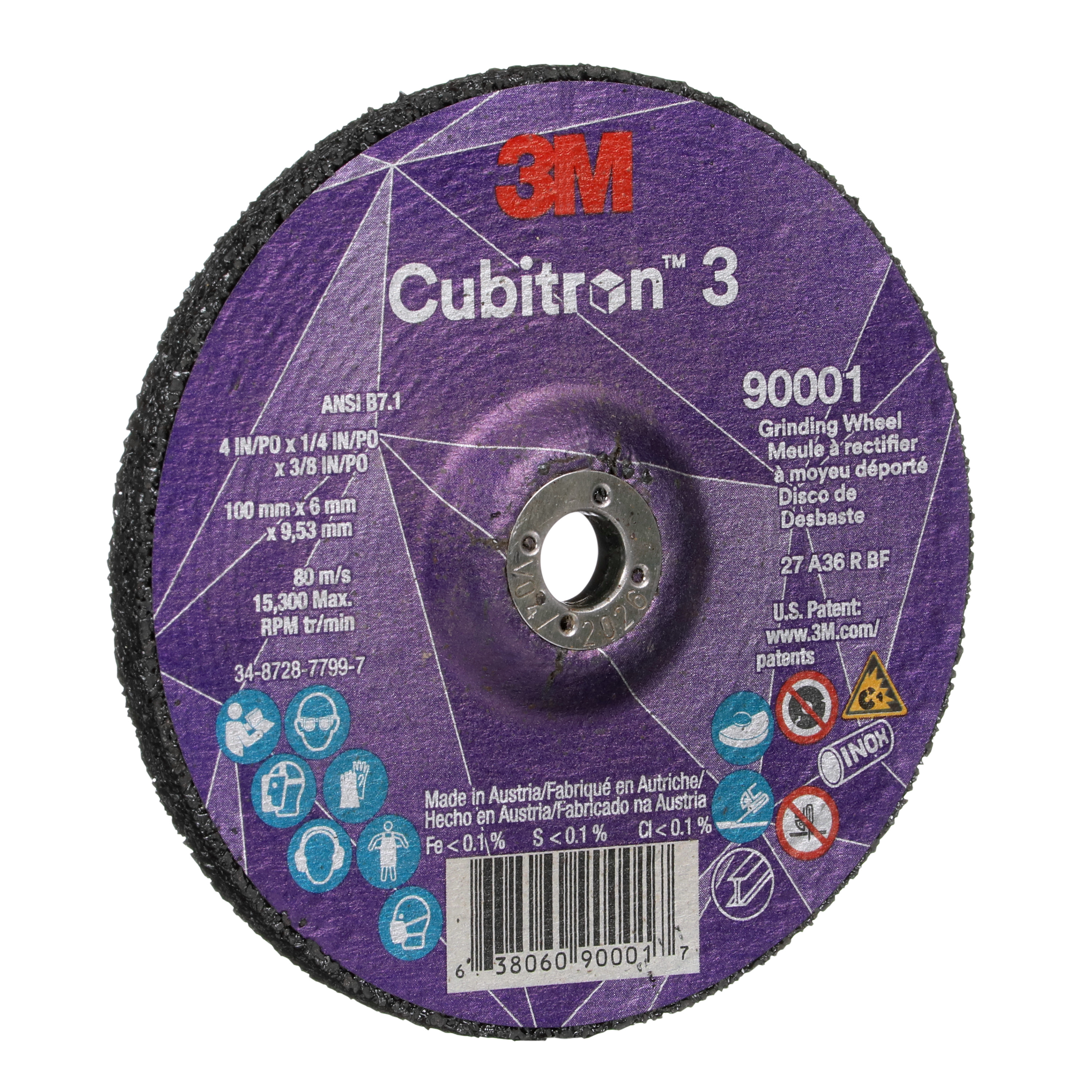 All Products>Abrasives>3M™ Cubitron™ 3 Depressed Center Grinding Wheel, 90001, 36+, T27, 4 in x 1/4 in x 3/8 in (100x6x9.53mm), ANSI, 10/Pack, 20 ea/Case