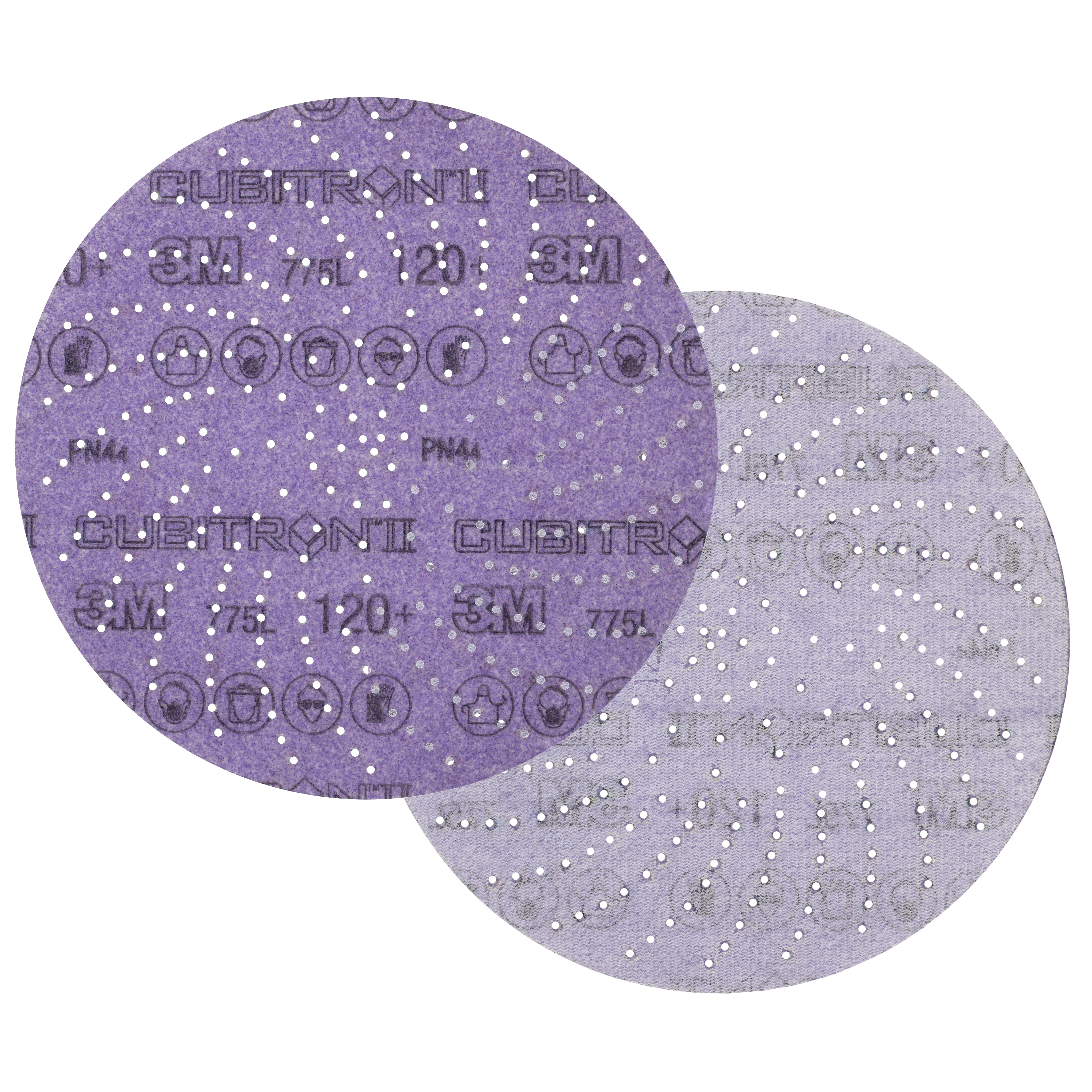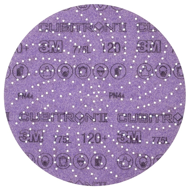The 3M Xtract Cubitron II Disc 775L is a part of the 3M Xtract Series, meaning that it is specially designed for optimal dust removal. Featuring an innovative, multi-hole pattern that extracts dust better than 5 or 6-hole products, this product delivers dramatically increasing disc life — without the need to align the disc pad holes. This product also uses ceramic 3M Precision-Shaped Grain, a revolutionary advancement in abrasive technology comprised of triangular-shaped ceramic mineral designed to slice through the substrate, rather than gouging or 'plowing' like conventional abrasives. This results in a disc that cuts quickly and efficiently. Additionally, the 3M Xtract Cubitron II Disc 775L has a film backing that delivers outstanding tear resistance, flexibility, and a consistent, uniform finish on a variety of substrates, including metals, composites, gelcoat, and whitewood. For best results, pair this disc with a 3M Xtract Random Orbital Sander.