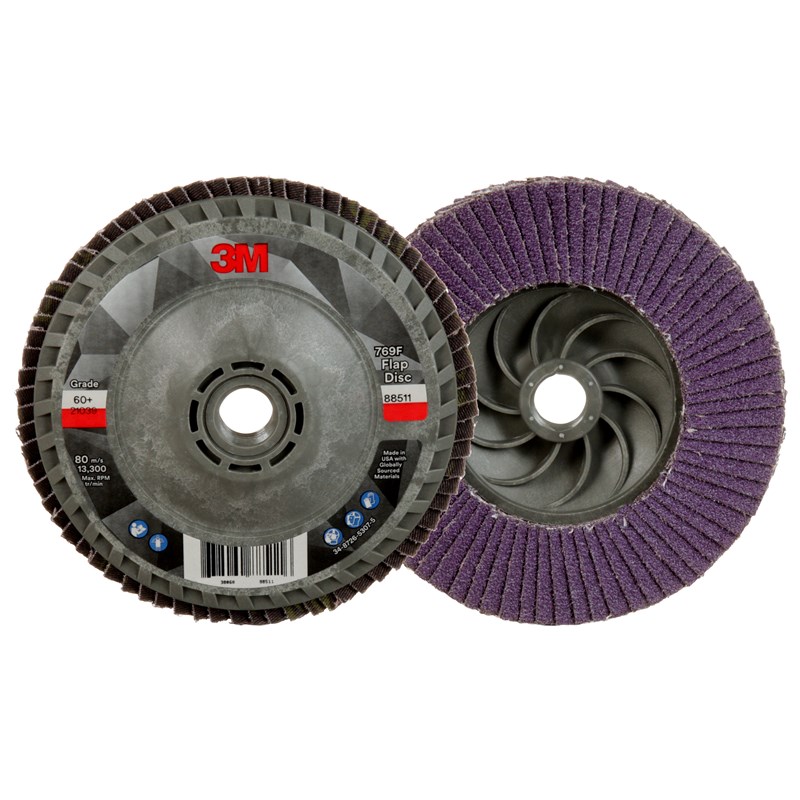 3M™ Flap Disc 769F, 60+, T27 Quick Change, 4-1/2 in x 5/8 in-11, 10 ea/Case