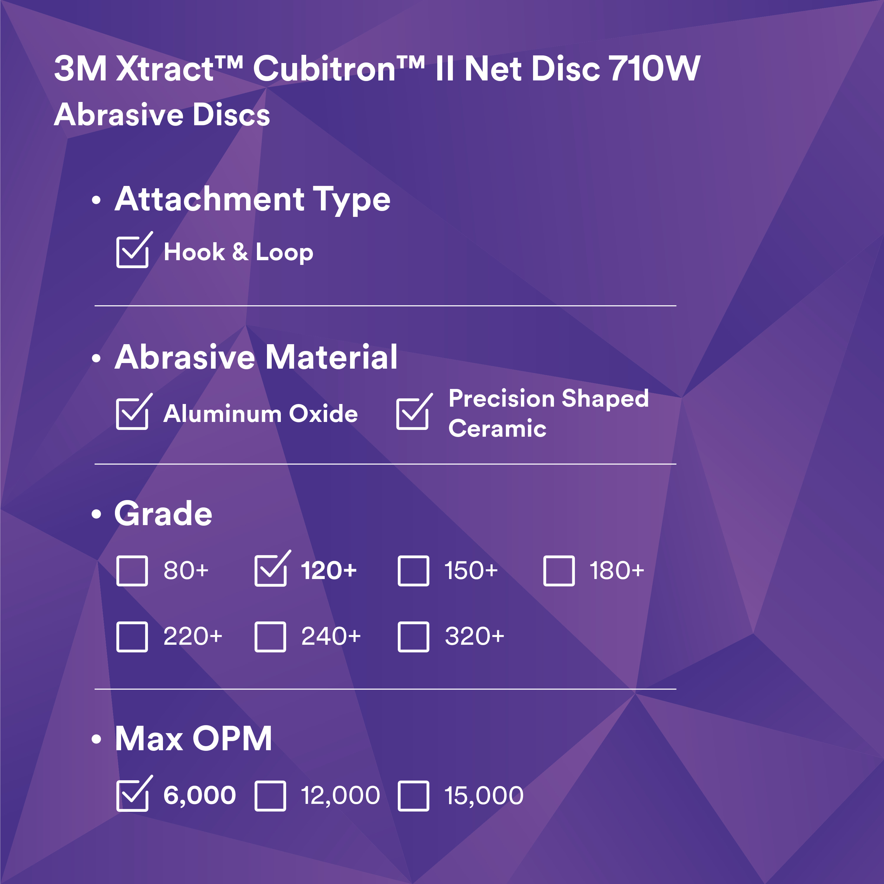 3M Xtract™ Cubitron™ II Net Disc 710W, 120+, 8 in x NH, Die 800L, 50/Carton, 300 ea/Case