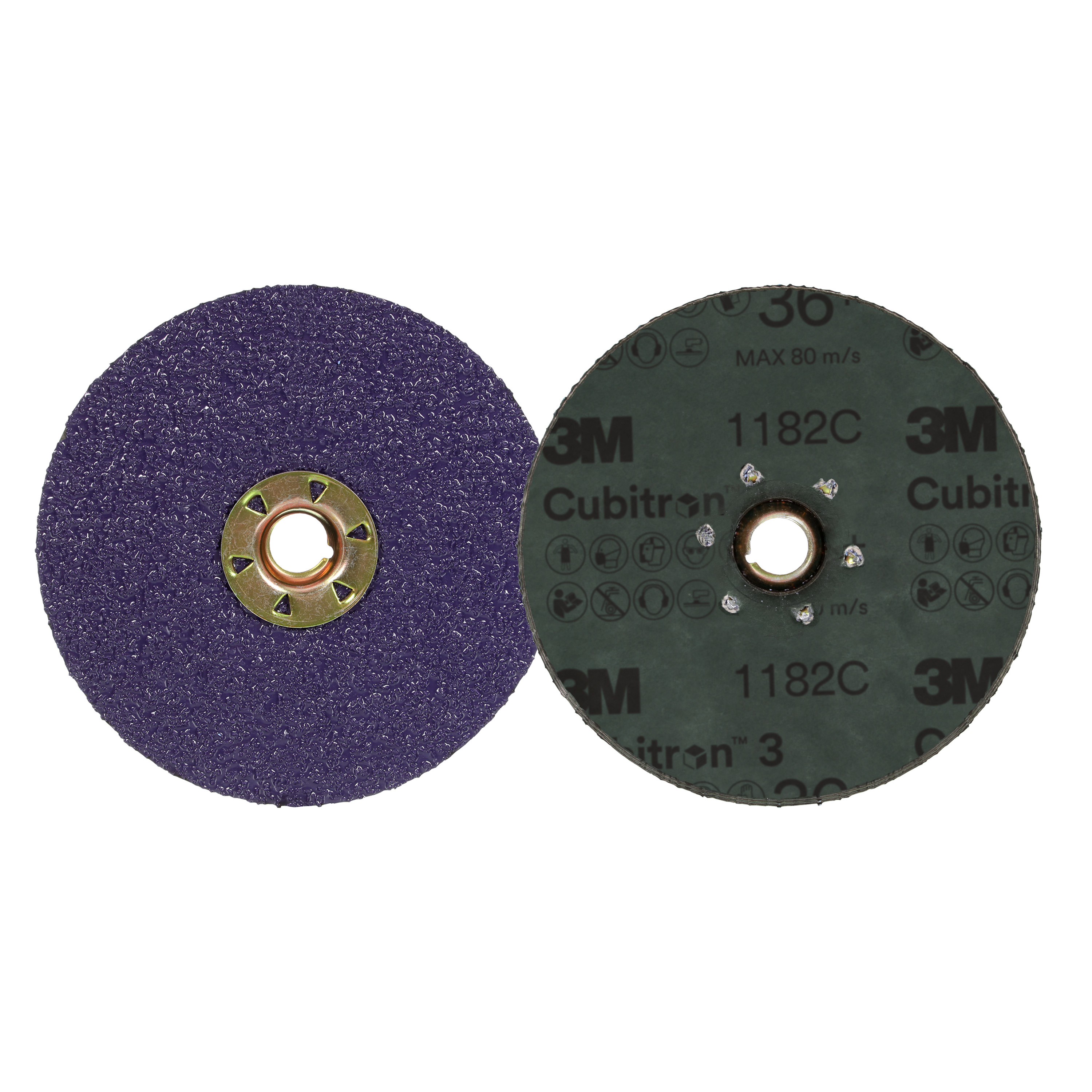 All Products>Abrasives>3M™ Cubitron™ 3 Fibre Disc 1182C, 36+, TN Quick Change, 5 in, Die 500P, 25/Bag, 100 ea/Case