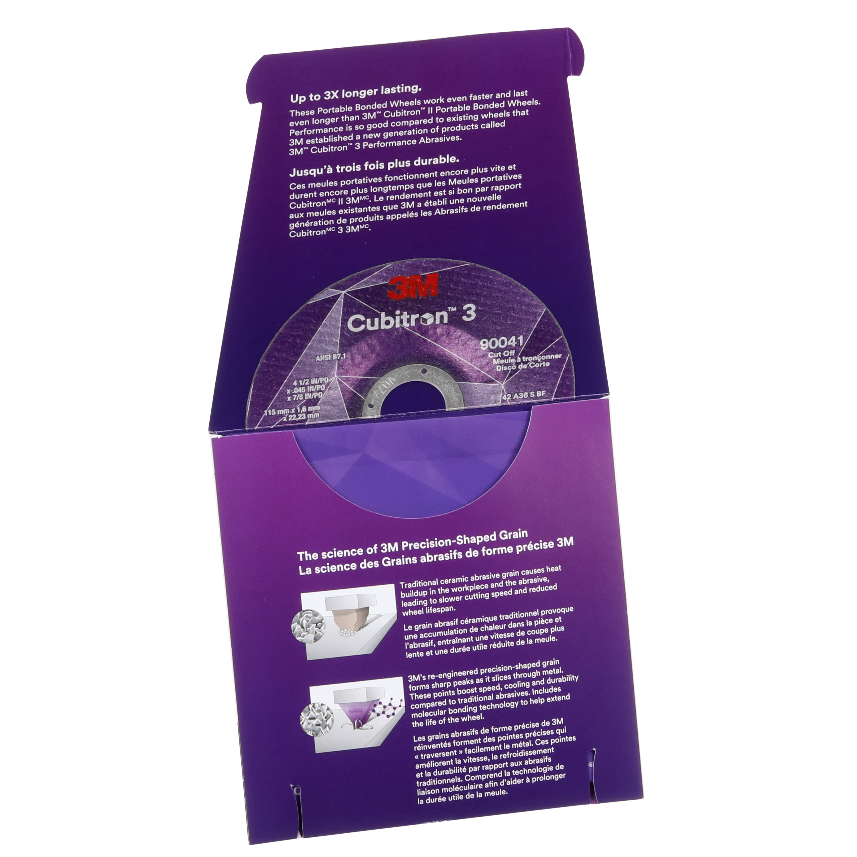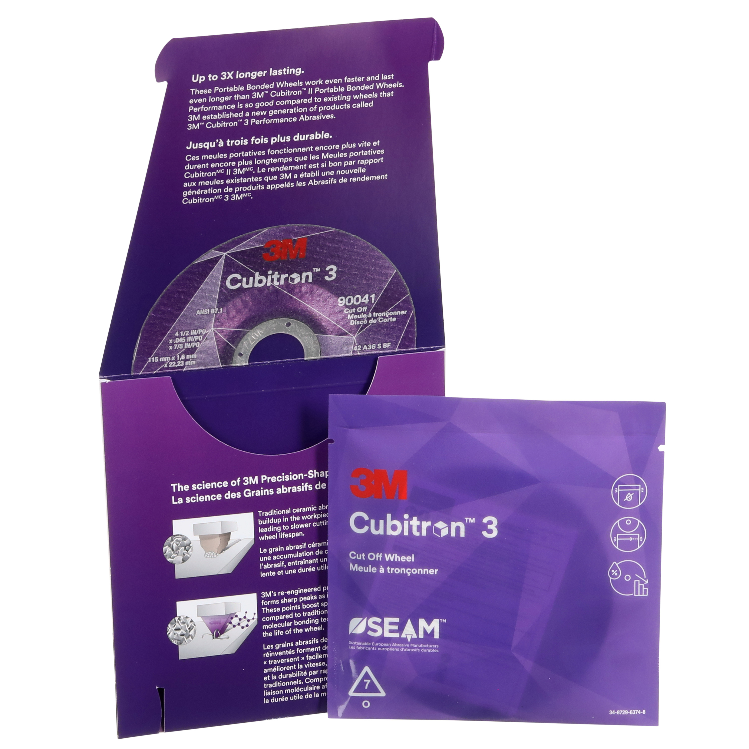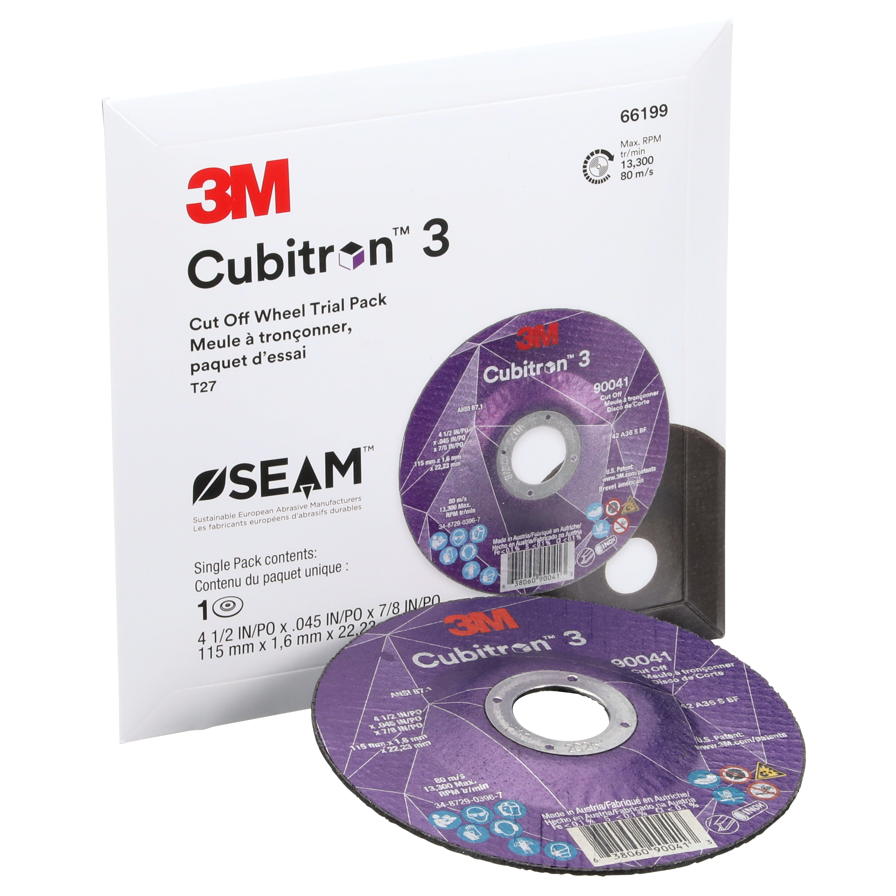 All Products>Brand>3M>Cubitron>3M™ Cubitron™ 3 Cut-Off Wheel, 66199, 36+, T27, 4-1/2 in x 0.045 in x 7/8 in (115mmx1.6mmx22.23mm), ANSI, 10 ea/Case, Trial Pack