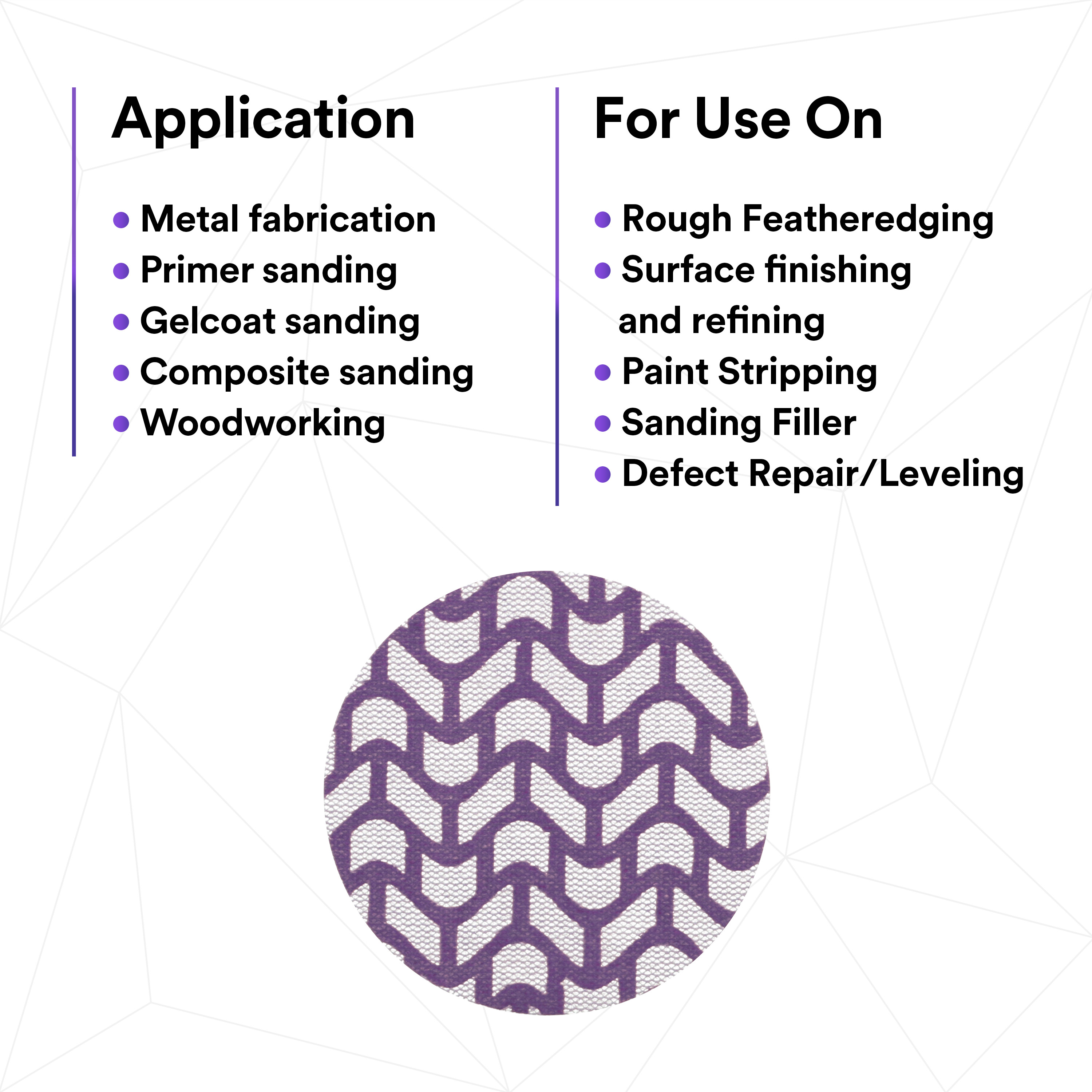 - ENABLING A CLEANER, SAFER WORK ENVIRONMENT - The unique abrasive pattern on a net backing allows for extracts up to 97% of dust produced creating a cleaner, virtually dust-free work environment. You'll finish more parts per disc with less dust in the environment, boosting productivity without sacrificing dust extraction