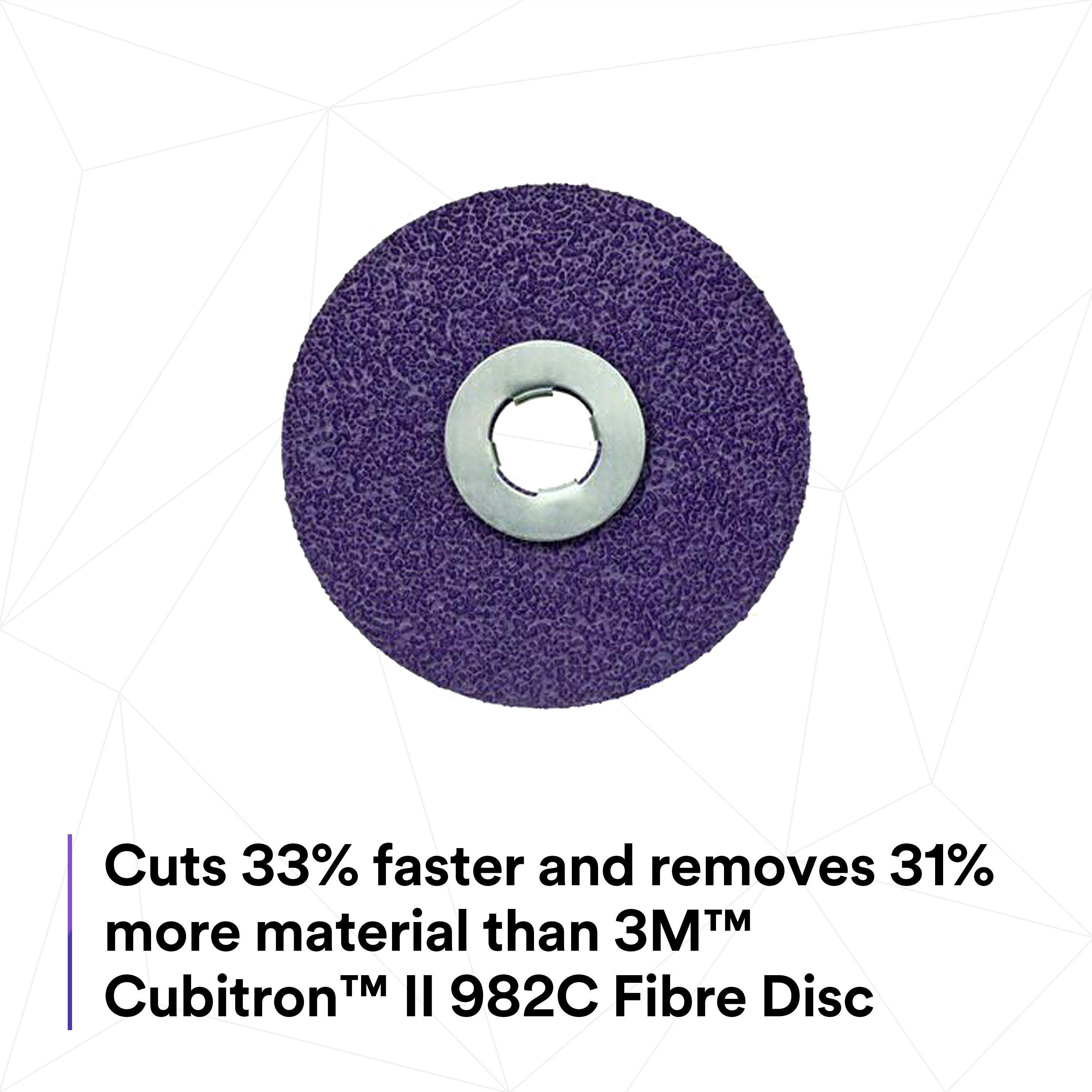 - RE-ENGINEERED 3M PRECISION SHAPED-GRAIN: Allows the 3M Cubitron II Fibre Discs 982CX Pro to provide a 33% higher cut rate and remove 31% more material with a sustained cut compared to 3M Cubitron II Fibre Disc 982C