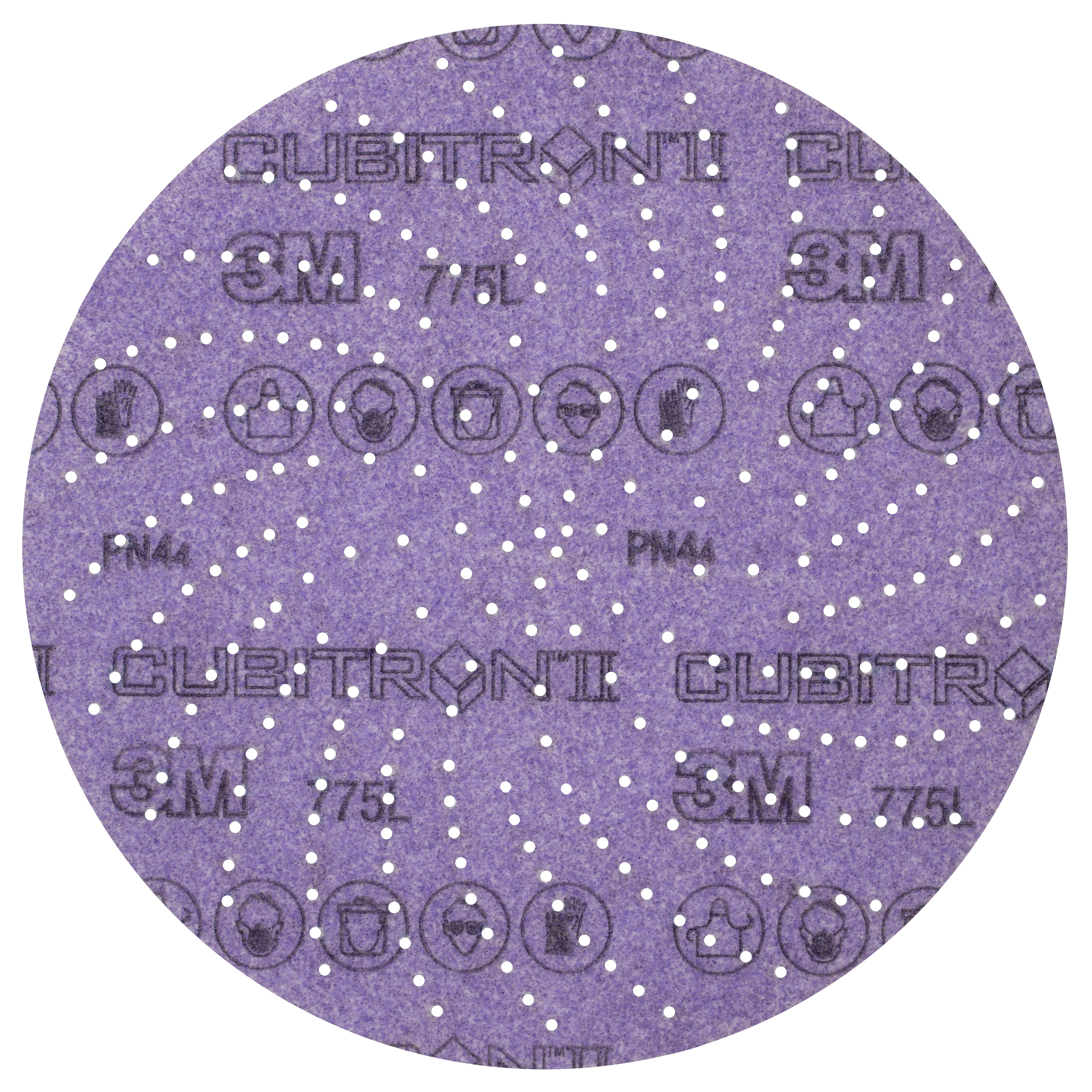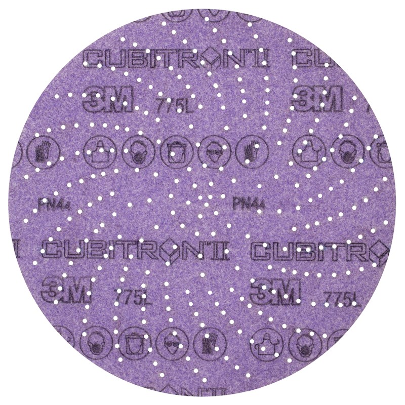The 3M Xtract Cubitron II Disc 775L is a part of the 3M Xtract Series, meaning that it is specially designed for optimal dust removal. Featuring an innovative, multi-hole pattern that extracts dust better than 5 or 6-hole products, this product delivers dramatically increasing disc life — without the need to align the disc pad holes. This product also uses ceramic 3M Precision-Shaped Grain, a revolutionary advancement in abrasive technology comprised of triangular-shaped ceramic mineral designed to slice through the substrate, rather than gouging or 'plowing' like conventional abrasives. This results in a disc that cuts quickly and efficiently. Additionally, the 3M Xtract Cubitron II Disc 775L has a film backing that delivers outstanding tear resistance, flexibility, and a consistent, uniform finish on a variety of substrates, including metals, composites, gelcoat, and whitewood. For best results, pair this disc with a 3M Xtract Random Orbital Sander.