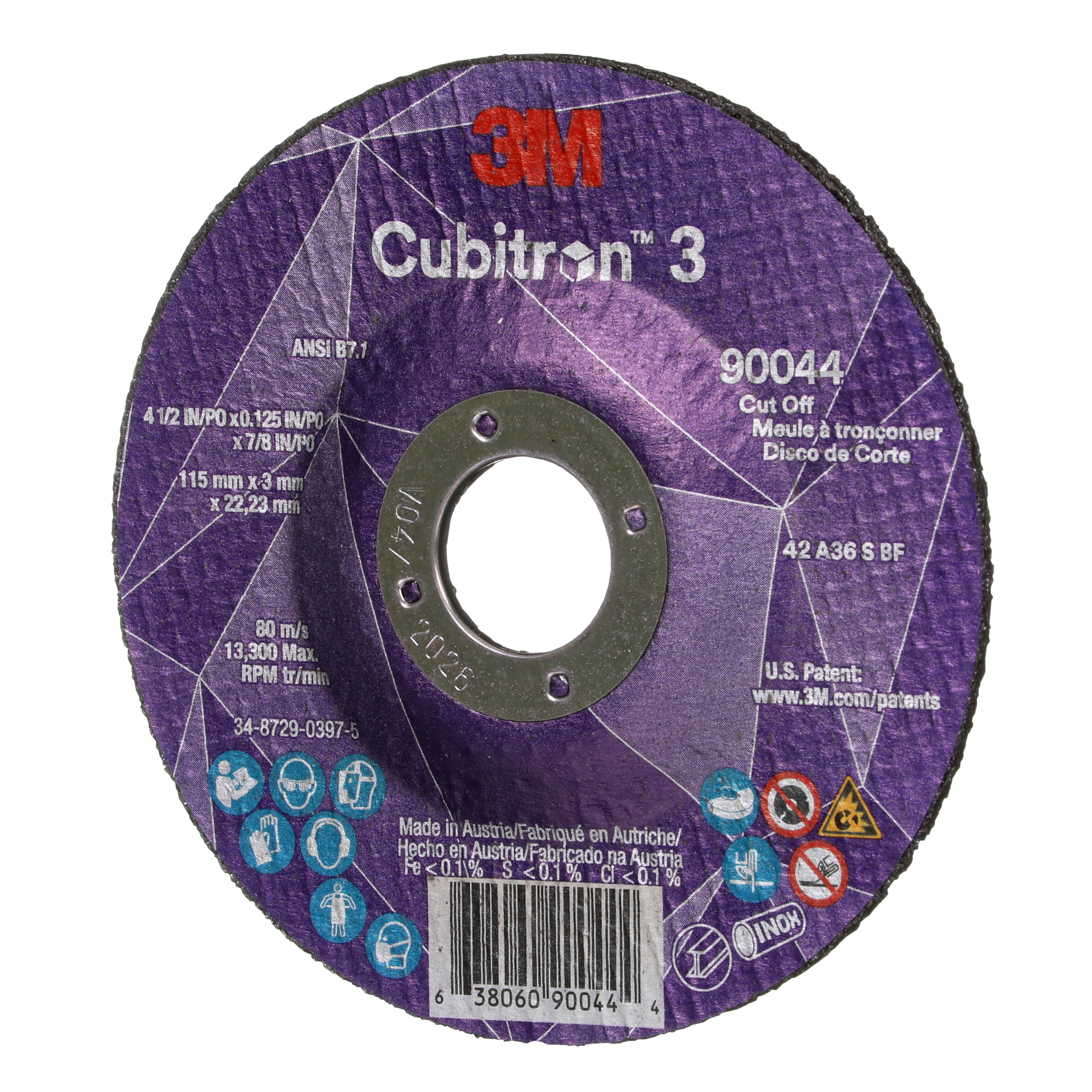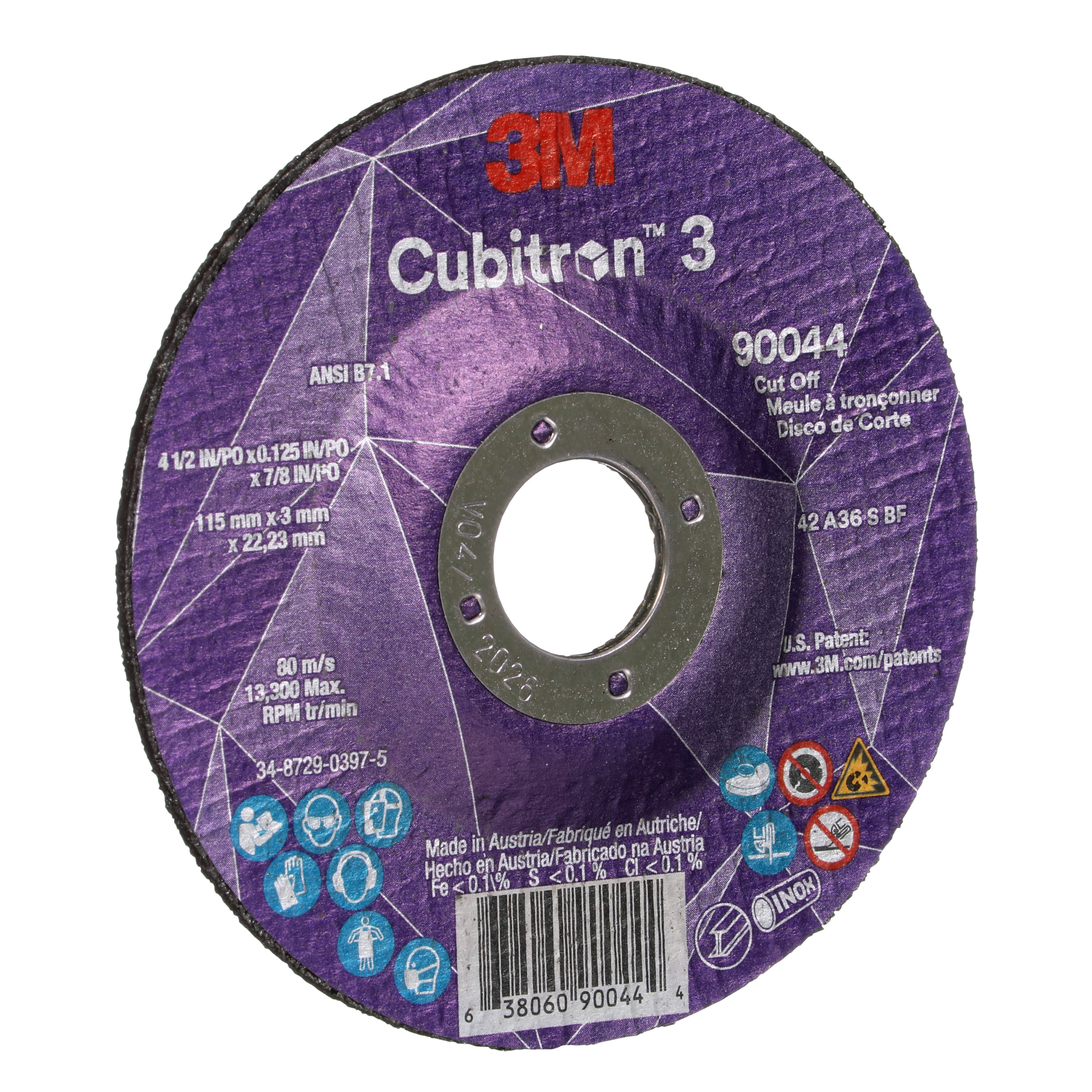 3M™ Cubitron™ 3 Cut-Off Wheel, 90044, 36+, T27, 4-1/2 in x 1/8 in x 7/8 in (115 x 3 x 22.23 mm), ANSI, 25/Pack, 50 ea/Case