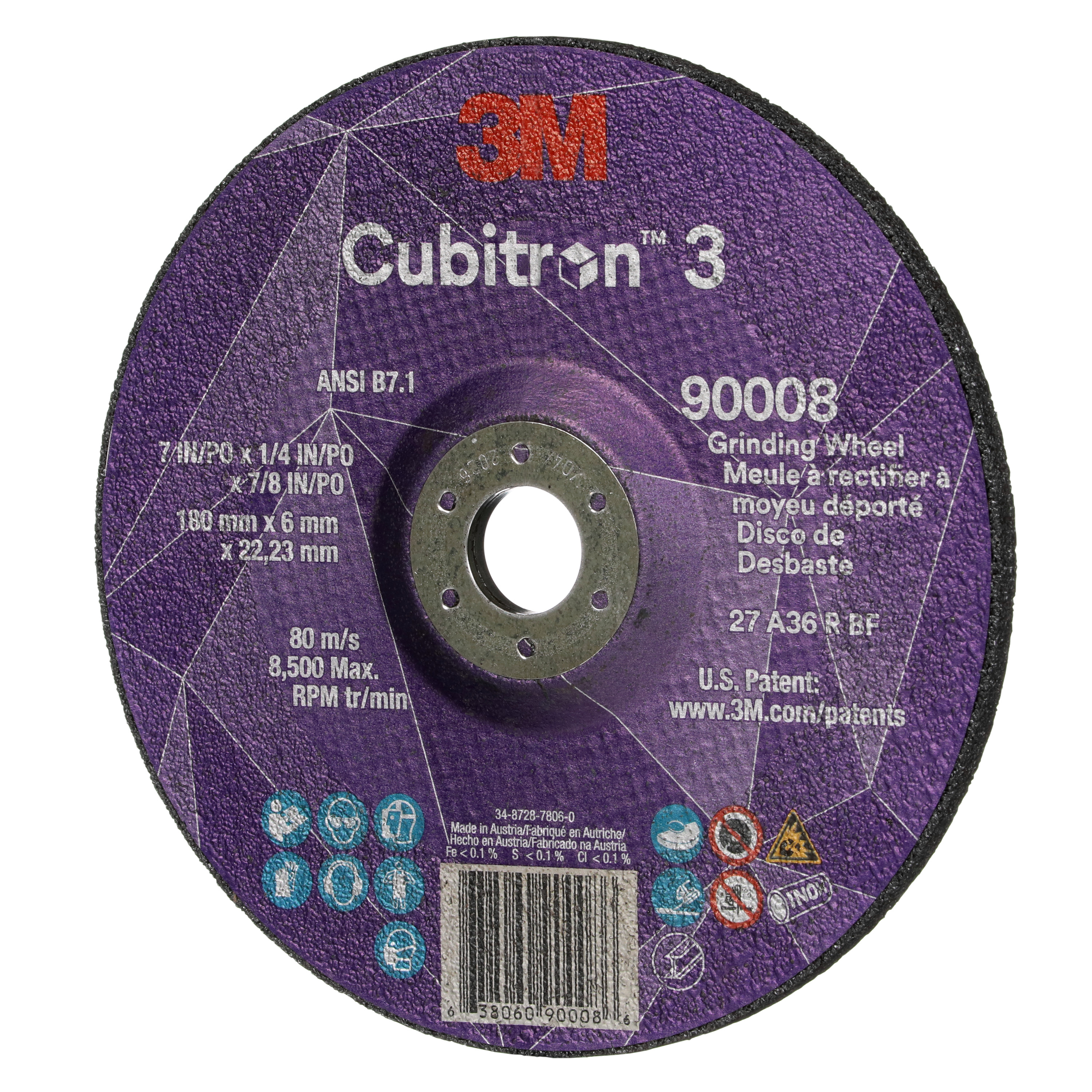 All Products>Abrasives>3M™ Cubitron™ 3 Depressed Center Grinding Wheel, 90008, 36+, T27, 7 in x 1/4 in x 7/8 in (180x6x22.23mm) ANSI, 10/Pack, 20 ea/Case