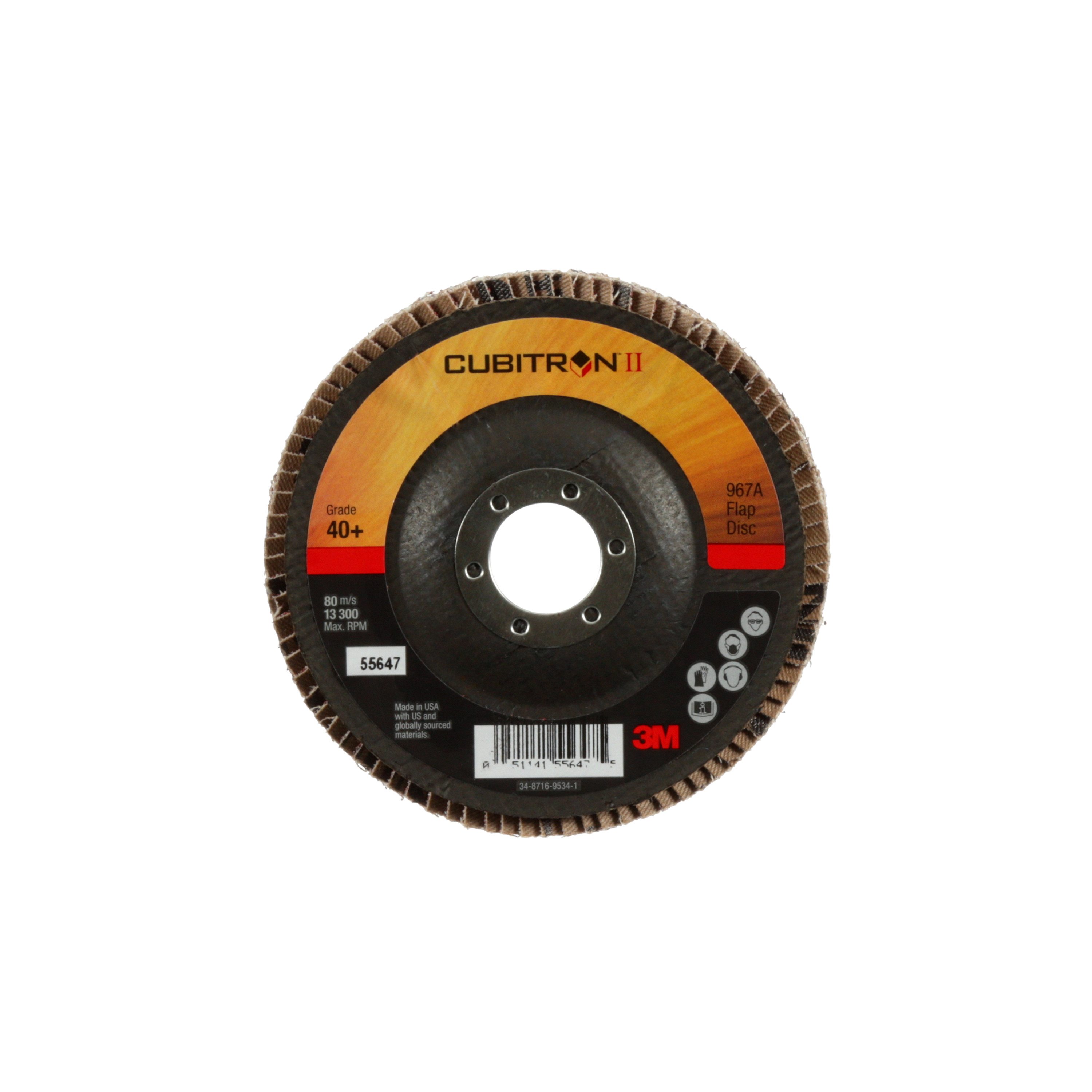 3M™ Cubitron™ II Flap Disc 967A, 40+, T29, 4-1/2 in x 7/8 in, Giant, 10 ea/Case