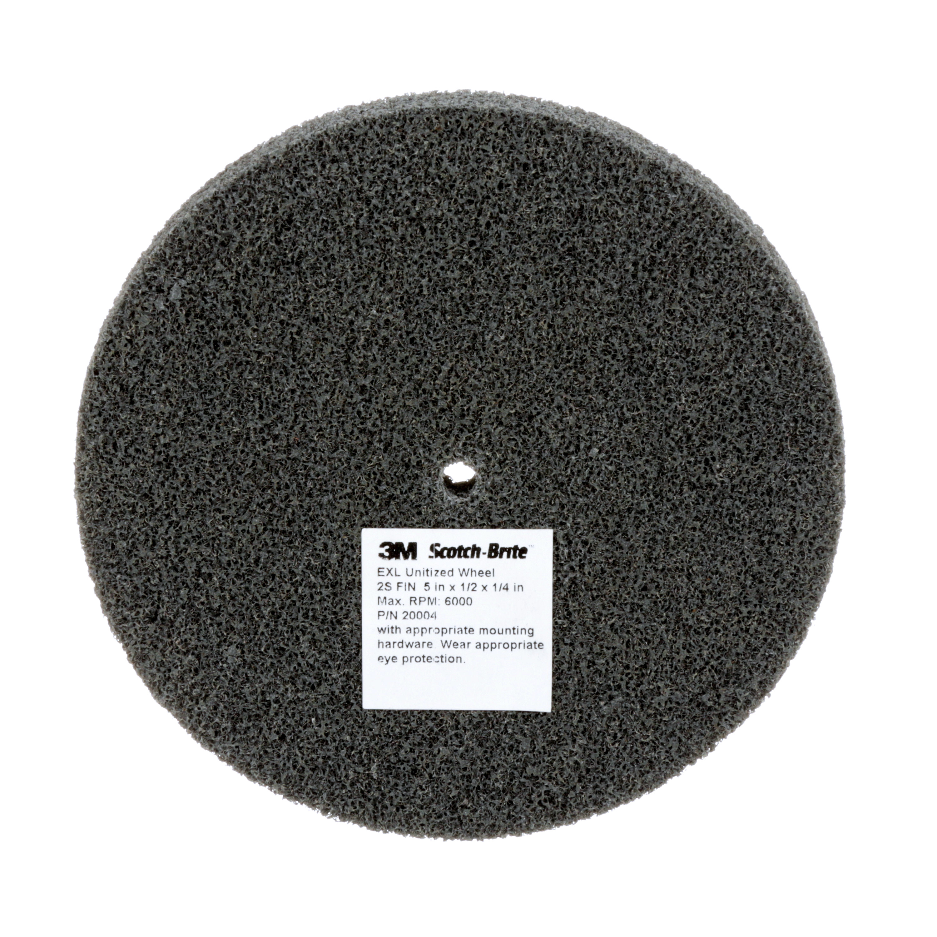 All Products>Abrasives>Scotch-Brite™ EXL Unitized Wheel, XL-UW, 2S Fine, 5 in x 1/4 in x 1/2 in, 20 ea/Case