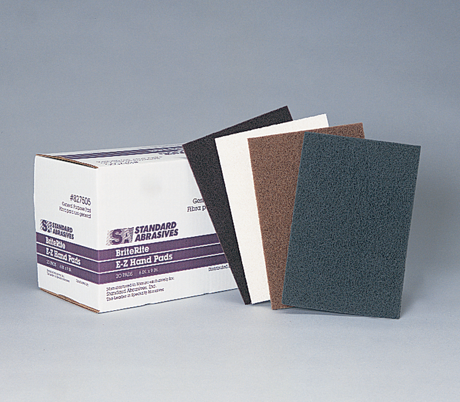Recommended Applications This tan Standard Abrasives™ Heavy Duty Hand Pad is a tightly constructed non-woven abrasive pad with the flexibility to fully cover contours as well as get into tight corners, ridges, and other uneven surfaces. Excellent for heavy cleaning, deburring, and finishing, this is one of the most aggressive and durable handpads in the Standard Abrasives line. Use it by hand or with a hand pad block.