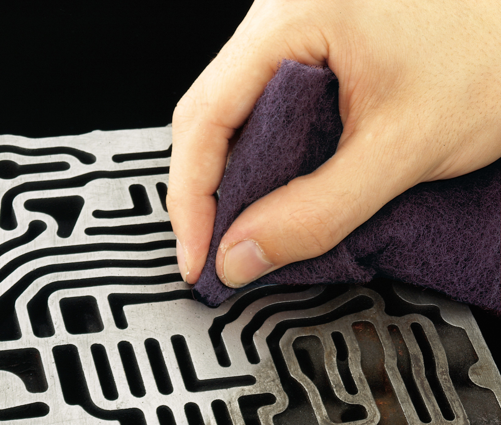 The Scotch-Brite™ Advantage Nonwoven technology makes our Scotch-Brite™ abrasives unique. The abrasive mineral is resin-bonded onto synthetic fibers, creating an open web construction. Spaces between the fibers permit excess material to escape, so the mineral does not get worn down by debris. It keeps the mineral cutting sharper longer, enhancing cut performance and increasing abrasive service life. The spring-like nature of the fibers works well on contours and responds to subtleties on the surface. Its responsive design effectively removes unwanted burrs, soils and contaminants without ruining the base material, so you get a consistent and uniform finish – part after part.