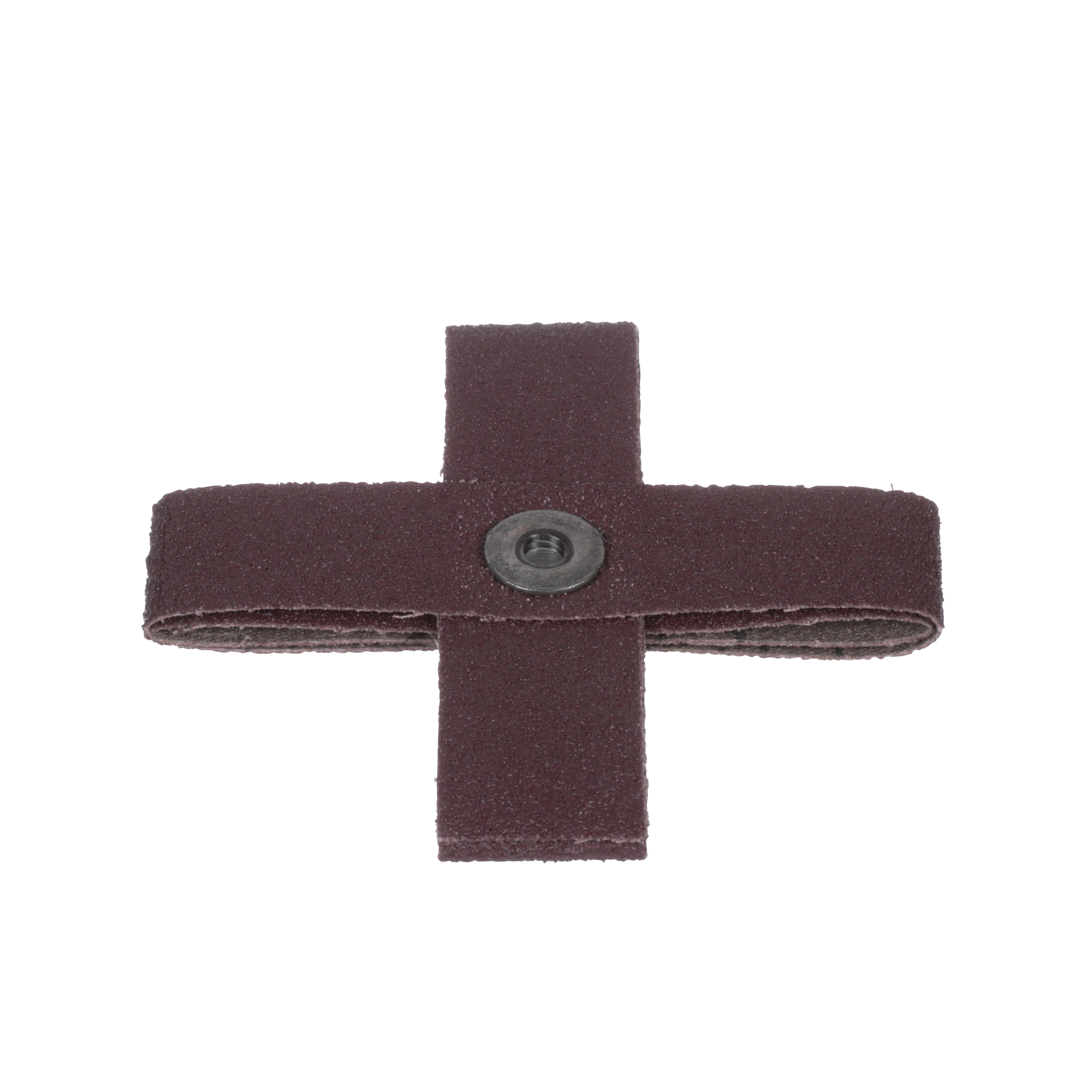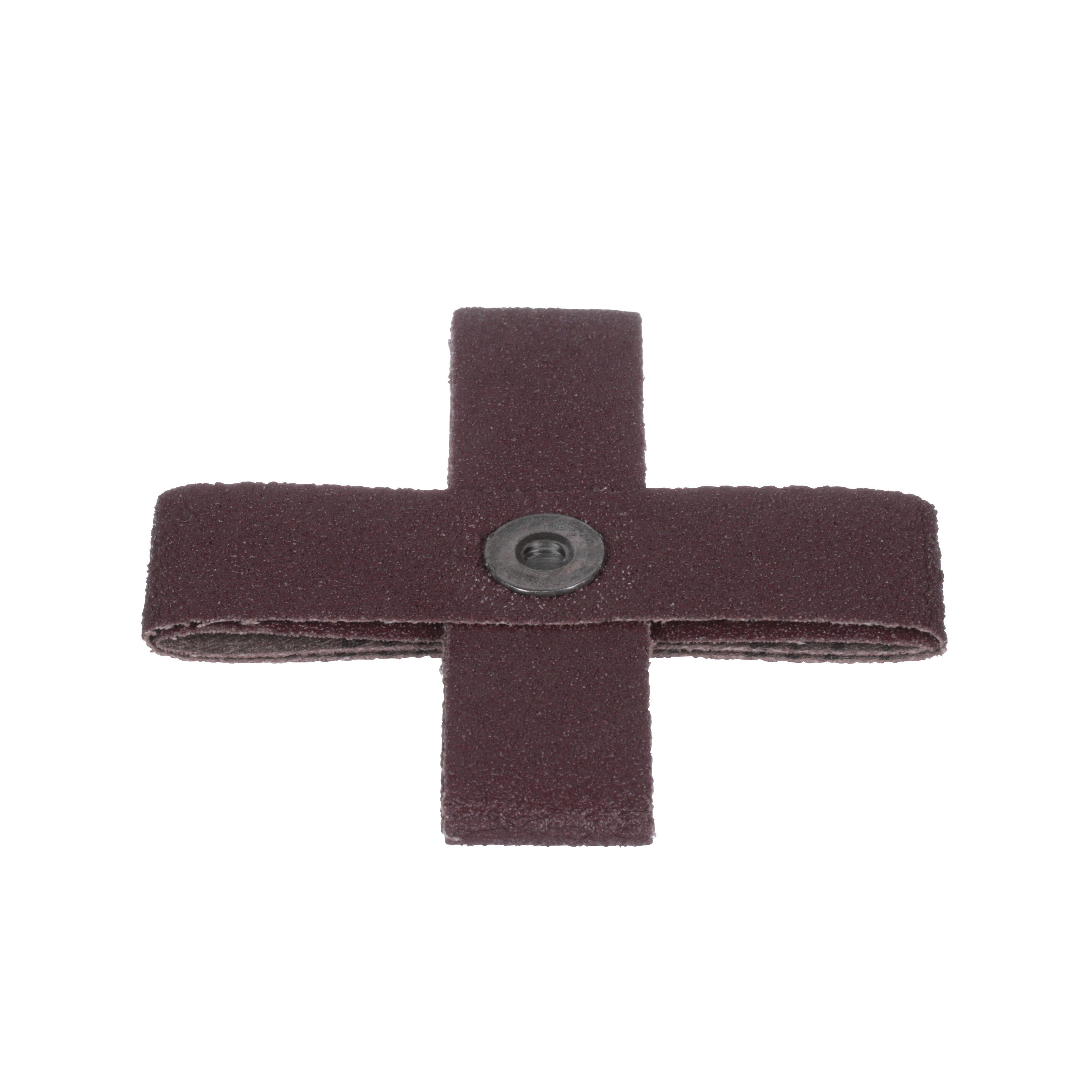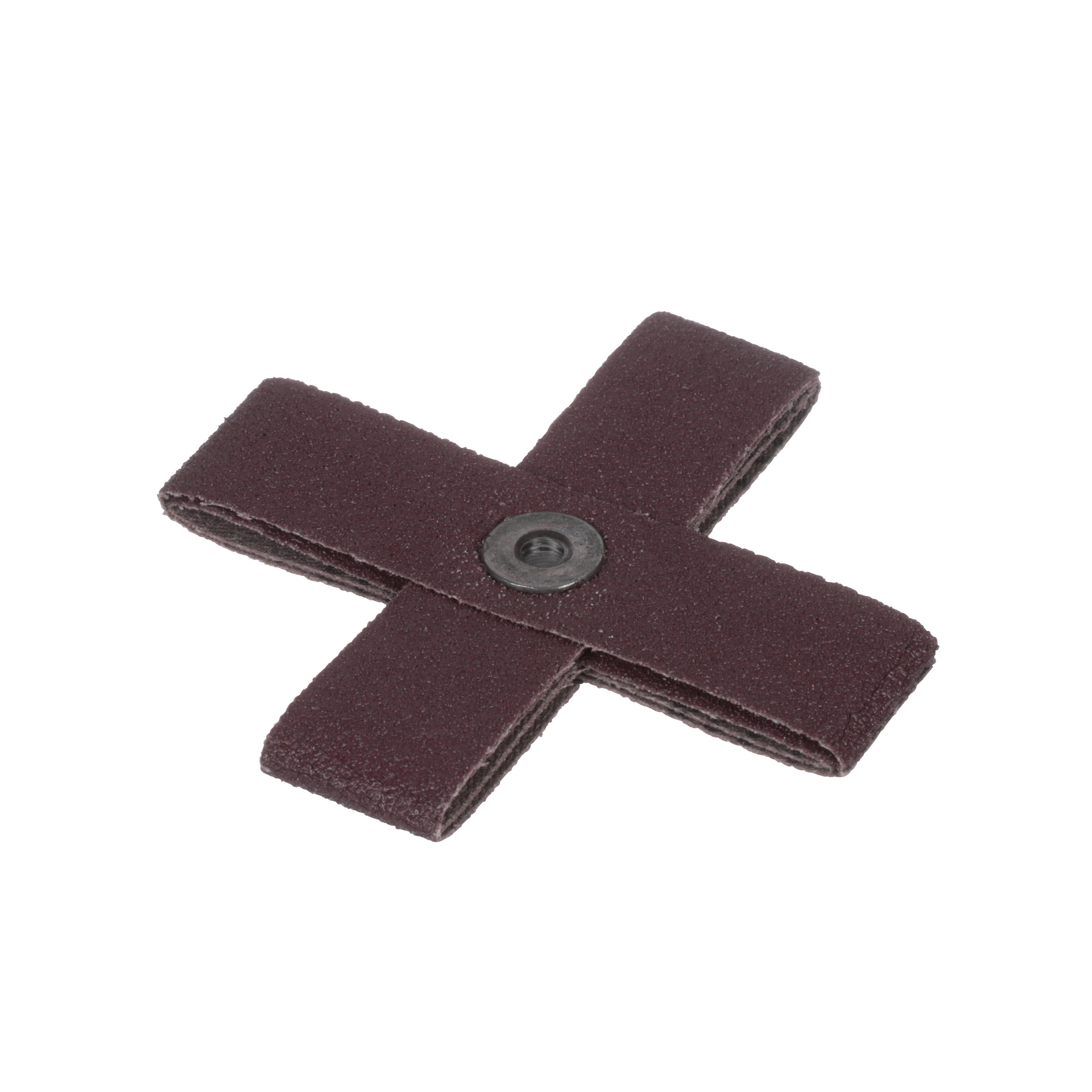 The cross pad has a metal eyelet that attaches to a mandrel and may be used with a rotary tool. By changing mandrel length, the user may shorten or extend the pad's reach. Standard Abrasives™ Cross Pads are manufactured from a variety of minerals, including Aluminum Oxide, Zirconia, Ceramic and Silicon Carbide (each sold separately). All minerals are securely anchored to the backing with a strong, heat-resistant resin bond. Combining cushion, flexibility and an aggressive cut, these well-rounded abrasive products offer outstanding versatility.