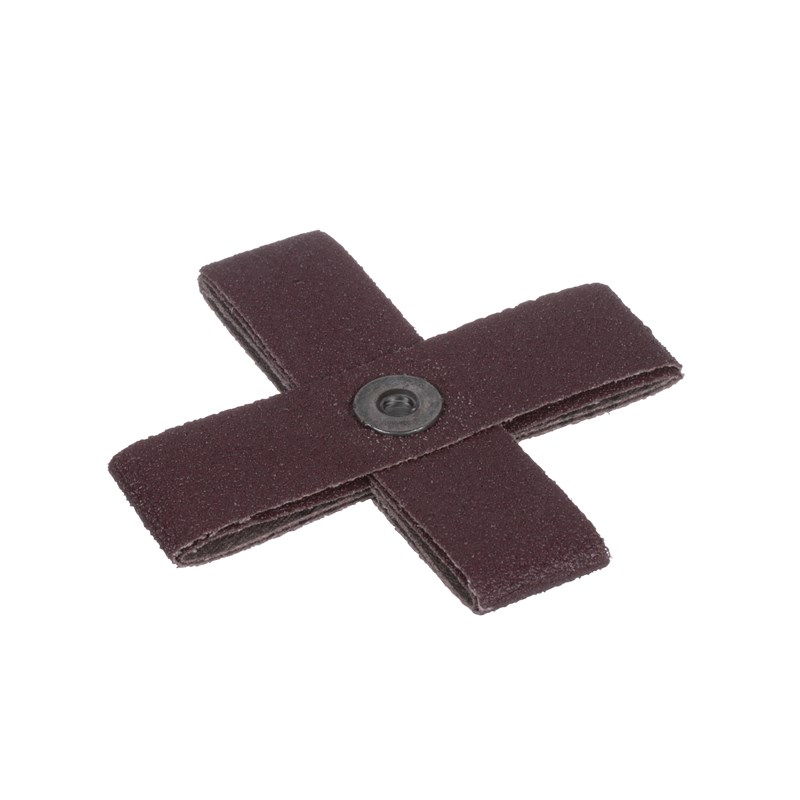 The distinctive design of the Standard Abrasives™ Aluminum Oxide Cross Pad enhances its versatility – making it well suited for grinding in hard-to-reach areas, as well as producing a final shine and polish. Strips of abrasive material are folded over an eyelet and intersect to form a cross. As the pad spins inside pipes or tubes, the four spindles rotate to swiftly finish the workpiece. Spindles are springy and buoyant enough to accommodate uniquely shaped parts, without gouging or marring the surface, and the mineral leaves a consistent scratch pattern. Cross Pads are less aggressive than square pads and are generally used for metal finishing tasks. Their small shape makes them ideally suited to get inside tubes and any other internal diameters.