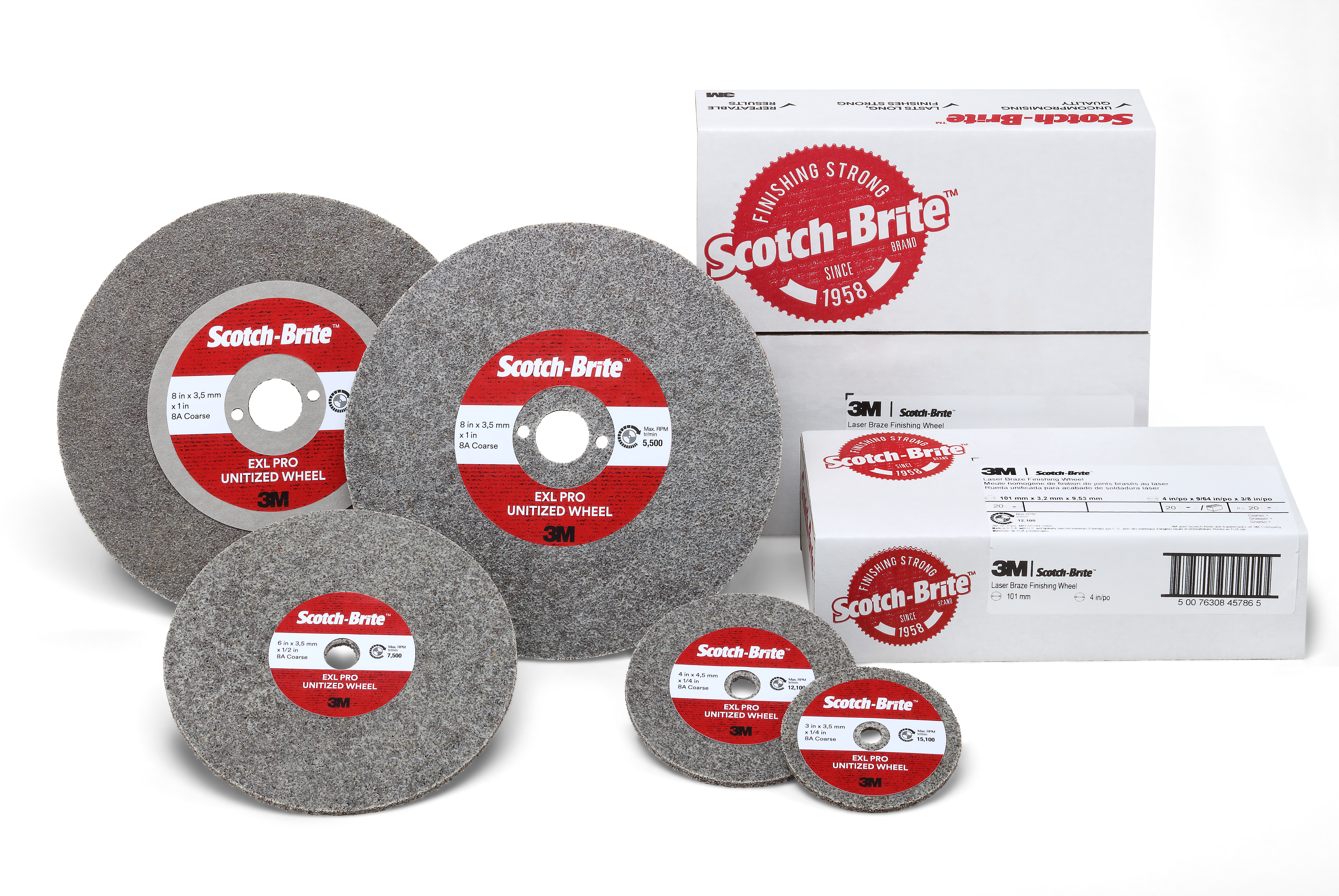 The Future of Automotive Production The Scotch-Brite™ EXL PRO Unitized Wheel is used primarily to finish seams on metal parts that have been assembled using a laser brazed joint. Laser brazing is a production process whereby parts are attached bonded to each other with a silicon bronze braze then blended to create a more uniform segment. This technique allows parts to flex and withstand the strain of driving without the need for rubber sealants. The removal and finishing of excess metal makes these brazed parts as clean and smooth as the attached surfaces, making the surface look more uniform and futuristic.