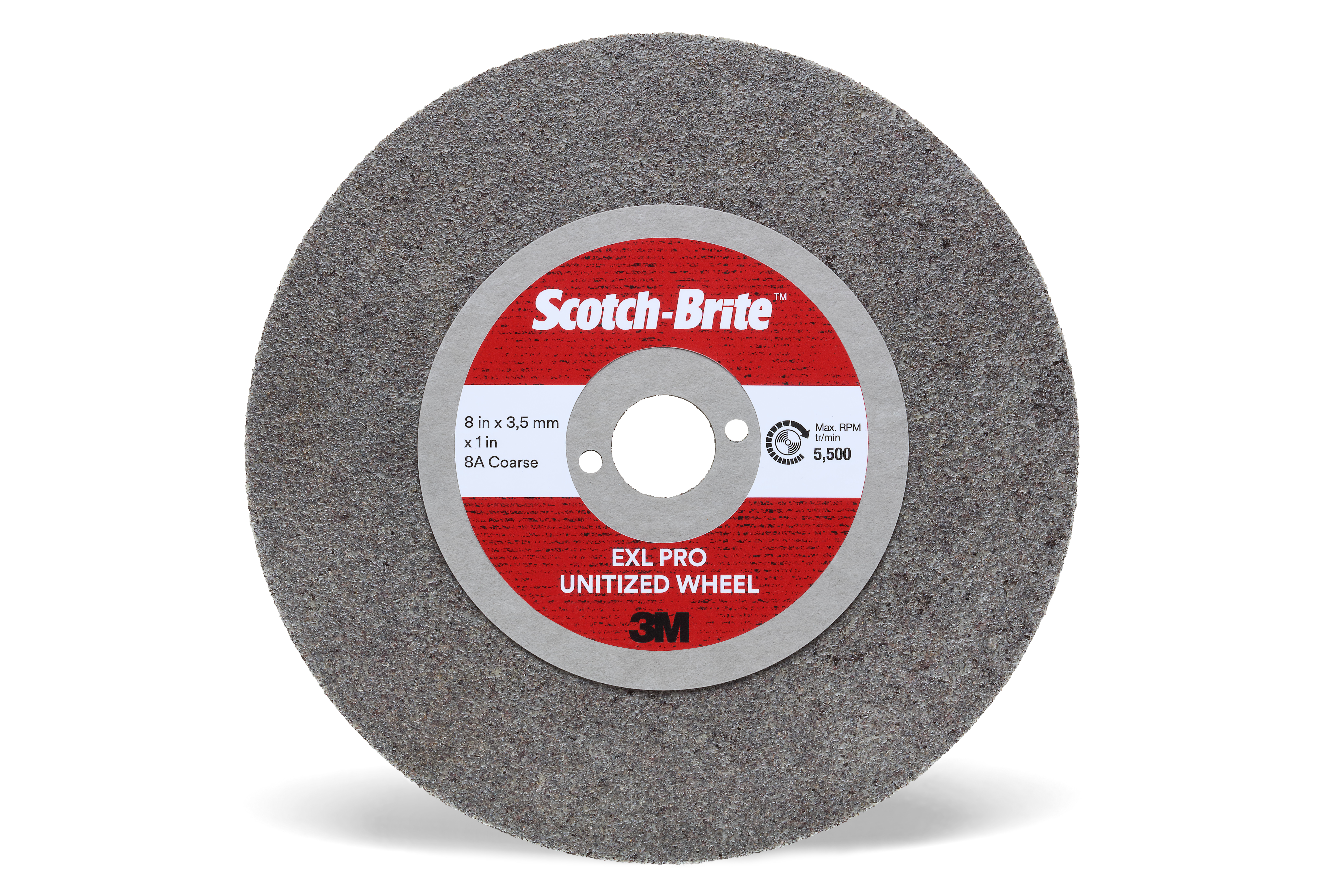 All Products>Abrasives>Scotch-Brite™ EXL PRO Unitized Wheel, EX-UW, 8A Coarse, 4 in x 3.2 mm x 3/8 in, 20 ea/Case