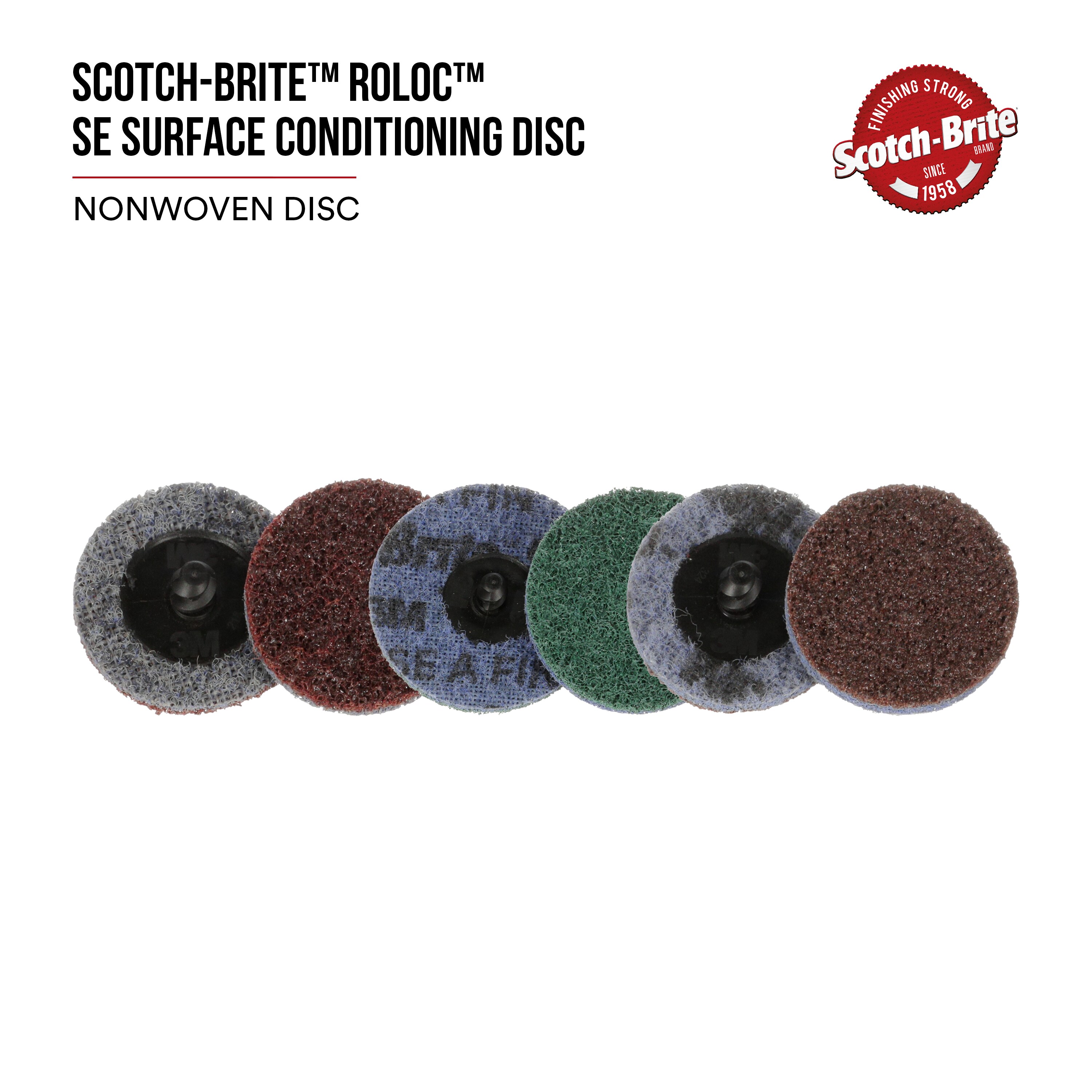 Complete jobs and multi step finishing processes efficiently with 3M™ Scotch-Brite™ Roloc™ SE Surface Conditioning Disc.