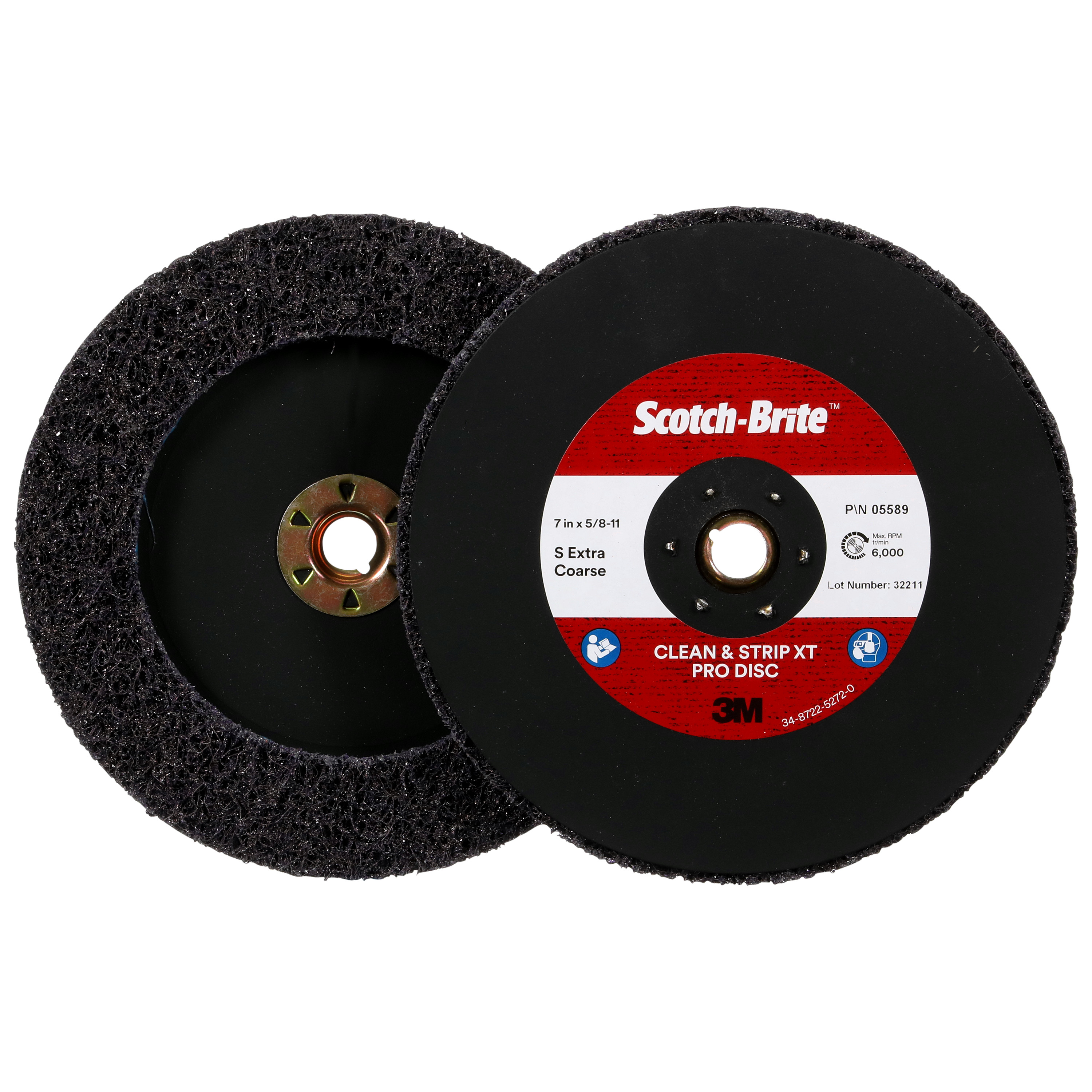 Scotch-Brite™ Clean and Strip XT Pro TN Quick Change Disc, XO-DN, SiC Extra Coarse, Purple, 7 in x 5/8 in-11, 5 ea/Case